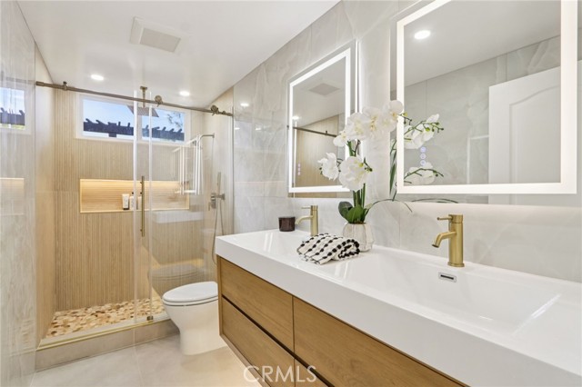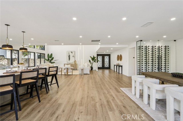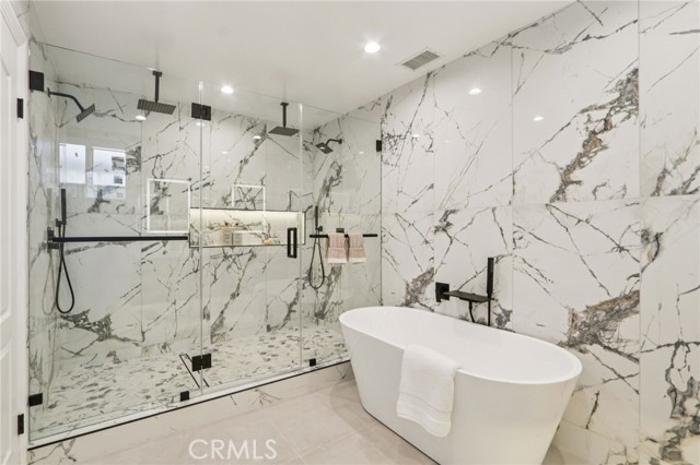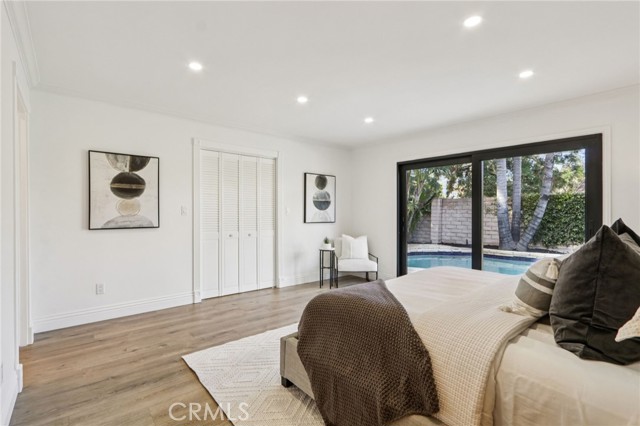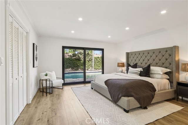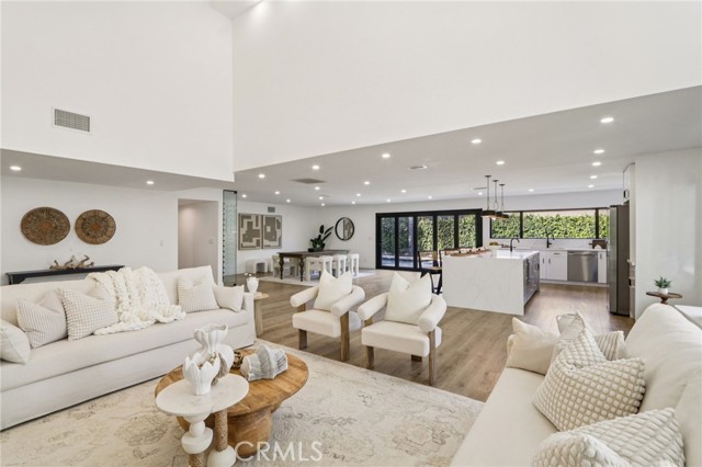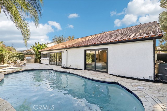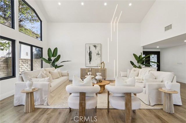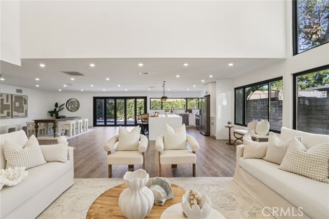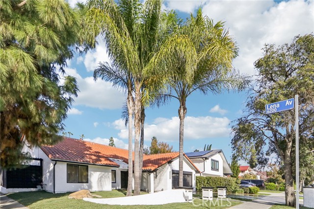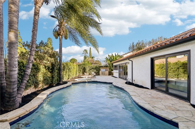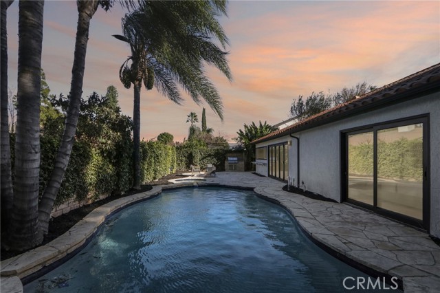 A house located in one of the most coveted areas in woodland hills. Perfectly positioned just adjacent to walnut acres. This property offers striking curb appeal perched on a gorgeous, landscaped corner lot. The street is tranquil and quiet. Features include 4 bedrooms 3 luxurious fully updated bathrooms with custom finishes throughout. From the moment you step into the home you're welcomed by soaring cathedral ceilings and an open breathtaking floor plan. Expansive all glass folding doors seamlessly frame views of the resort style pool and spa. The gourmet kitchen is the heart of the home, featuring brand-new high-end appliances; 2 separate sinks including a dedicated island sink for special occasions, and custom cabinetry. Elegant premium laminate flooring runs throughout the living spaces. Prepare to be captivated by the spa inspired bathrooms, reminiscent of a 7-star hotel. Stunning color matched aquamarine marble glass slabs create a serene oasis that transports you to paradise even just for a while. The attention to detail continues with interior custom lighting setting the perfect ambiance in every room, and a mini walk in all glass wine bar for your entertainment pleasure. Step outside to your private backyard retreat, where the resort style pool and spa have been fully refurbished as new and enjoy the built-in backyard barbecue. Don't miss this opportunity to own this stunning move in ready custom home in this beautiful area of woodland Hills.