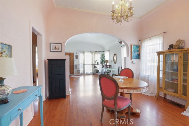 Character and charm await in this beautifully detailed 2-bedroom, 1-bath home, ideally located in one of San Pedro’s most desirable neighborhoods. Rich in architectural character, the home features oak hardwood flooring throughout the living room, formal dining room, hallway, and both bedrooms. Original textured walls, a classic dome ceiling, and graceful archways add timeless appeal and distinctive style, PLUS solar panels! A unique highlight is the staircase leading to a semi-finished attic, offering harbor and city views—an ideal space for a serene retreat, home office, playroom, or additional storage. The property also includes the classic “Old San Pedro wine cellar,” perfect for extra storage. The detached single-car garage is currently utilized as an art studio, while the east side of the home features a dedicated storage and tool area, creating a functional workspace for hobbies or projects. Enjoy true California indoor-outdoor living with a rear deck that opens to a spacious backyard—perfect for relaxing, entertaining, or gardening.