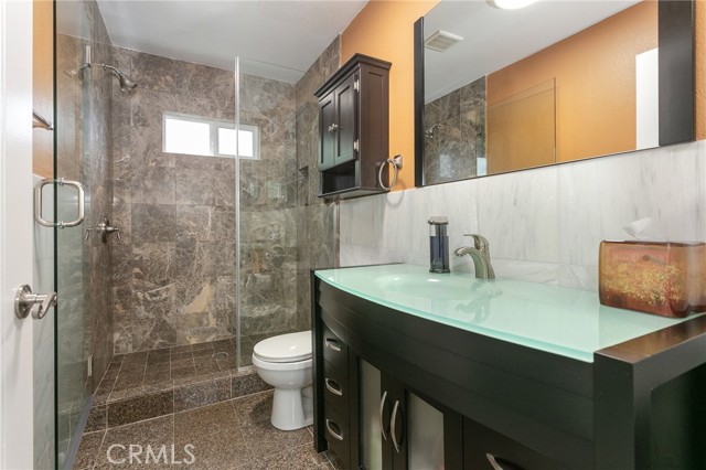 Set on a quiet, secluded street with a cul-de-sac feel in Woodland Hills, this fully renovated 3-story home offers 3,332 sq.ft. of flexible living space and a highly functional layout. With 6 bedrooms and 4 bathrooms, each level features two bedrooms, creating a versatile setup for multi-generational living, guests, or work-from-home needs. An additional approximately 1,000 sq.ft of storage space on the ground level provides a potential for an ADU conversion or addition. The main level welcomes you with high vaulted ceilings, an open living and dining area, and a spacious kitchen centered around a large island with seating. Custom cabinetry, granite countertops, and stainless steel Viking appliances complete the space. Two bedrooms and two bathrooms are also located on this level. The lower level is designed as a private primary suite, featuring an oversized bedroom with double-door entry, a custom walk-in closet, and direct access to a private deck. A bar/entertaining area and an additional room, currently used as a family room, offer added flexibility. The upper level includes two additional bedrooms, a bathroom, and a private balcony. Outdoor spaces include multiple decks, a front patio with a gazebo, and newly installed vinyl privacy fencing, creating a natural indoor-outdoor flow. An additional approximately 1,000 sq.ft of storage space on the ground level provides a potential for an ADU conversion or addition. Extensive upgrades include a newer roof, two HVAC units, tankless water heater, smart home features (Lutron system, smart entry door lock, Nest thermostat), upgraded garage with epoxy flooring and built-in storage, EV Tesla chargers, and more. Conveniently located just minutes from Ventura Boulevard, Westfield Topanga, and Topanga Village, with easy access to the 101-fwy and Mulholland Drive, as well as nearby hiking trails and scenic hillside surroundings, this move-in ready home offers a strong balance of privacy and accessibility.