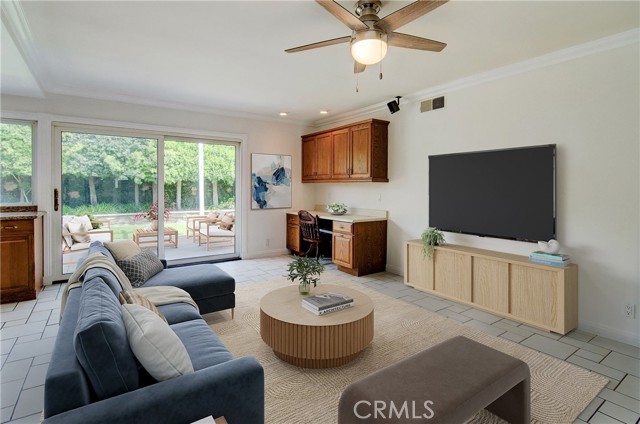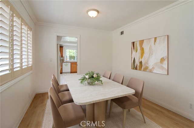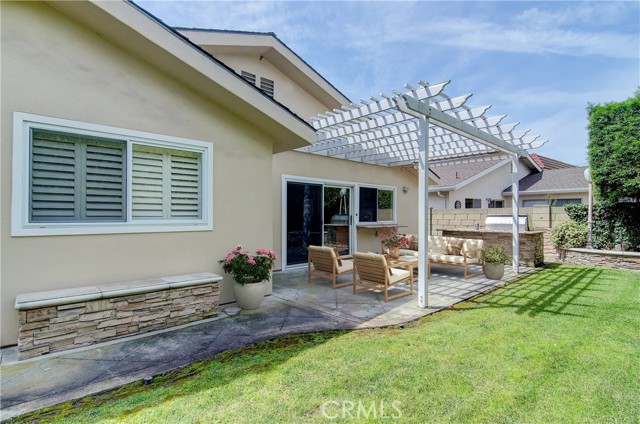 Fantastic purchase opportunity on this 4-bedroom, 2-bathroom single-story "Princeton" model in the popular College Park East neighborhood of Seal Beach. Fresh interior painting and new Luxury Vinyl Flooring throughout the living area. Outstanding features of this property include great curb appeal, a double-door entry, custom-tiled entry, new LVP flooring in the living room, dining room & bedrooms, crown molding, a fireplace in the living room, vaulted ceilings, plantation shutters throughout, an open and bright kitchen with granite countertops, a full granite backsplash, ample pantry space, and recessed lighting. There is a separate family room with a built-in desk and corner cabinet. The large primary bedroom features a walk-in closet and sliding glass doors to the backyard. The primary bathroom has been updated with a custom tile vanity, shower and flooring. Dual-pane windows and sliding doors are throughout the home and the bedrooms are a nice size. The hallway bathroom includes a dual-sink custom-tiled vanity and tub wall. AC has been recently upgraded in 2023. The laundry room includes a washer and dryer, and the bedrooms have ceiling fans and mirrored closet doors. The verdant and private backyard features mature trees creating an oasis for entertaining, a built-in BBQ, and an outdoor patio area. A 2-car attached garage has extra built-in storage cabinets and the driveway features an attractive flagstone ribbon and low maintenance landscape. This beautiful home is located in the coveted "Los Alamitos Unified School district" and close to shopping, restaurants, golf courses, beaches, and freeways. Don't miss out!