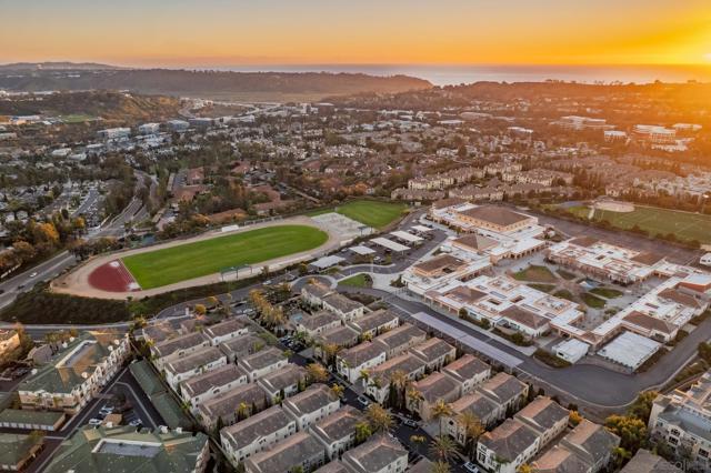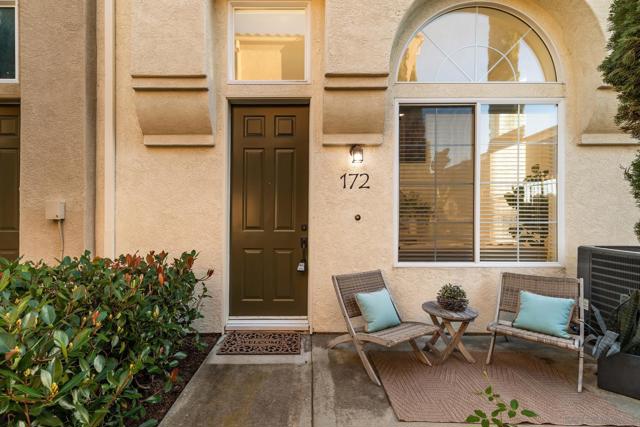 Welcome home to Andalucia, a premier townhome community in the heart of Carmel Valley. This 2 bed, 2.5 bath townhome south facing end unit offers comfort, functionality, and everyday convenience. A welcoming patio creates a natural extension of the home, providing a comfortable place for morning coffee or a relaxing moment at the end of the day. Inside, the entry opens to a versatile sitting area that works well as a lounge, reading space, or home office. High ceilings and large windows bring in natural light, giving the home an open feeling throughout. A short flight of stairs leads to the main living level, which brings together the kitchen, family room, dining nook, and powder bath in a comfortable, open layout. The kitchen features a large island with room for seating, pendant lighting above, newer stainless steel appliances, ample cabinetry, and a built-in desk that supports both daily routines and busy schedules. Upstairs, the bedrooms are designed as dual primary suites, each with its own full bath, offering privacy and flexibility for guests or shared living. Throughout the home, thoughtful features enhance both appearance and function, including luxury vinyl plank flooring, crown molding, a smart thermostat, a newer AC unit, a washer, a dryer, and a direct access 2-car garage. Residents of Andalucia enjoy access to a pool, spa, and fitness center as well as close proximity to Carmel Del Mar Elementary, Carmel Valley Middle School, the Boys and Girls Club, Torrey Pines High School, Canyon Crest Academy, One Paseo, and The Del Mar Highlands.