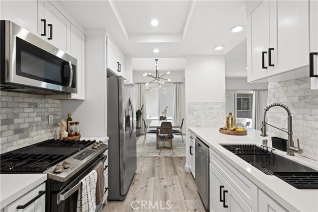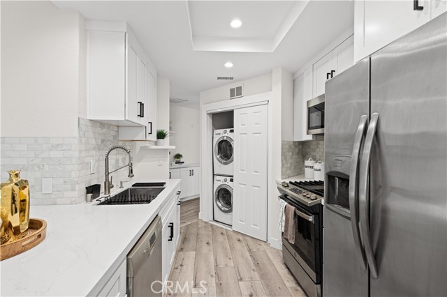 Beautifully remodeled, move in ready 2 bed 2.5 bath condo in prime Brentwood location. Open entertainers floor plan features high ceilings, stunning natural light and a seamless flow from living room, dining room, and kitchen. Large sliding glass doors lead you to a patio overlooking the lush and tranquil courtyard. Each bedroom has its own private bathroom and tons of closet space, with the primary offering an oversized walk in closet. There is a powder bathroom perfect for guests to use. Additional highlights include: custom built in cabinetry in hallway for extra storage, in unit laundry, only one common wall, rooftop pool & spa with gorgeous views, 2 car assigned tandem parking with 10 guest spots, and private storage in garage. Dream central location just a stones throw away from shops, restaurants, work out studios and more. Just pack your bags and move right in! HOA fees include trash & water.
