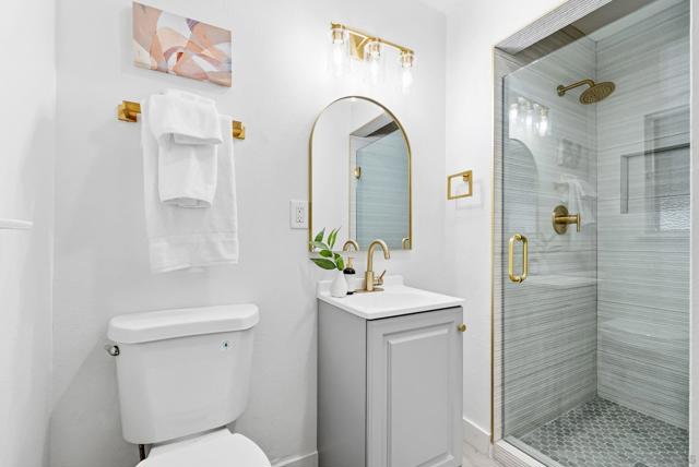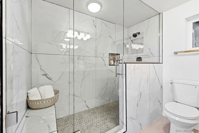 Buyers loss is your gain, back on market! Remodeled, great inspection, section 1 clearance to be done and move in ready in the desirable Allied Gardens area of San Diego. Located near shopping, dining, top-rated schools, and with easy access to major freeways, this home offers both comfort and an ideal central San Diego location. Inside, the home has been thoughtfully updated with fresh interior and exterior paint, new hardwood flooring, upgraded baseboards, doors and trim, and stylish luxury lighting throughout. The fully remodeled kitchen features new cabinetry, quartz counters, and all-new appliances, while the bathrooms have been elevated with modern vanities, updated fixtures, and beautifully finished tile showers. The flexible layout includes an additional en-suite bedroom and convenient inside laundry. The functional layout opens to a flat, private backyard with fresh landscaping, a pebble walkway, and a new tile patio—ideal for relaxing and entertaining, complete with a built-in outdoor fireplace and tiled seating area. The primary bedroom offers an expanded walk-in closet and direct access to the backyard. Complete with covered carport parking plus space for 6–8 vehicles, scenic views from its corner lot positioning, and a true turnkey feel, this property stands out as an excellent opportunity you won’t want to miss.