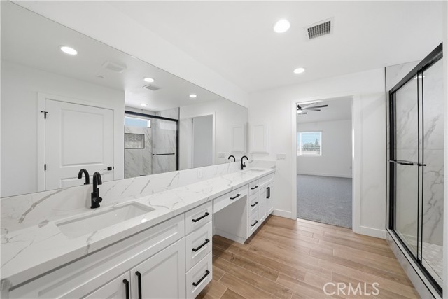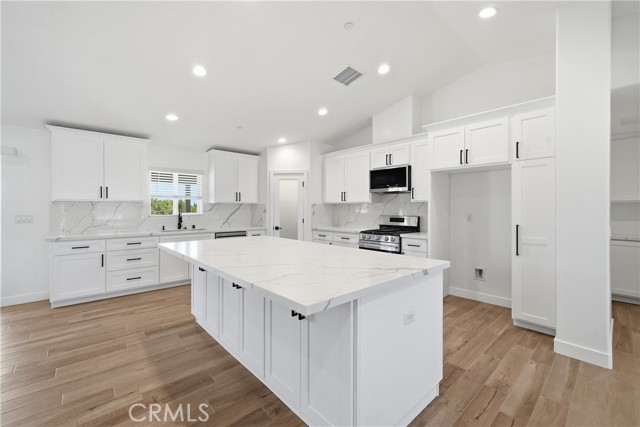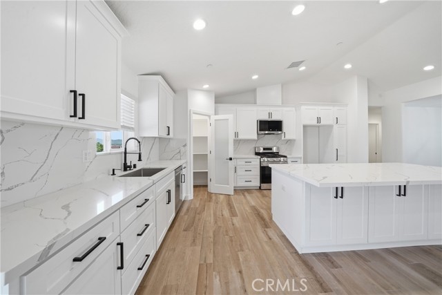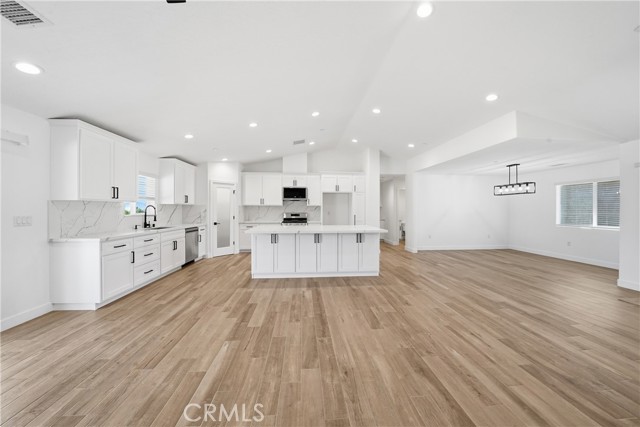 Stunning 4 bed, 2.5 bath home is located in a prime location of Hesperia. Offering 2,211 sq ft of modern living with wood-look tile floors throughout and a thoughtfully designed split floor plan for added privacy. The gourmet kitchen is a true showstopper-featuring stainless-steel appliances, quartz countertops, a walk-in pantry, and an oversized island perfect for entertaining. Unwind in the spacious primary suite with a custom walk-in shower, double sinks, and a large walk-in closet. Enjoy the convenience of an indoor laundry room with extra storage, a 3-car garage, and a covered patio for outdoor living. PAID OFF solar + a spacious backyard ready for your personal touch and dream landscaping. Enjoy the convivence of being just minutes away from local shopping, dining, schools, and the Hesperia Golf & Country Club. Perfect for everyday living and weekend relaxion. You will absolutely fall in love with this home!
