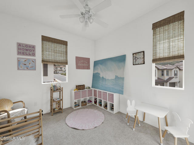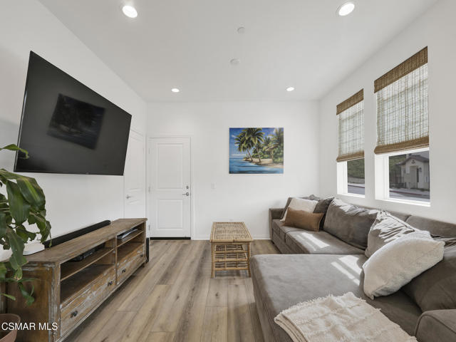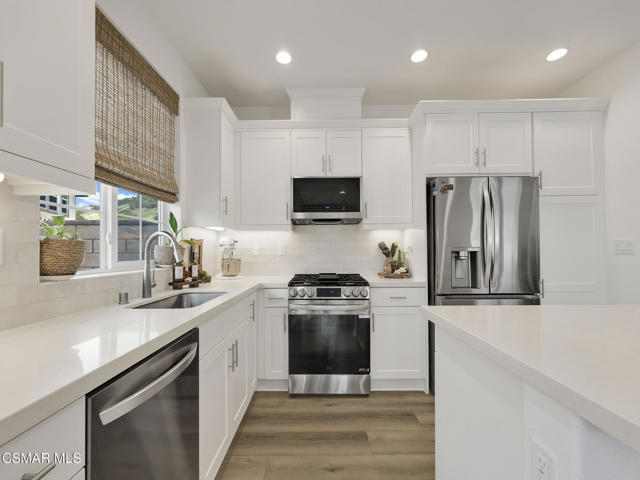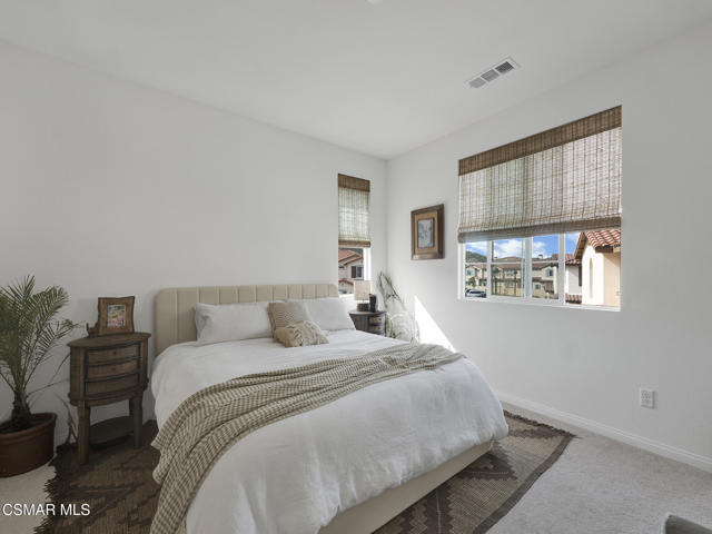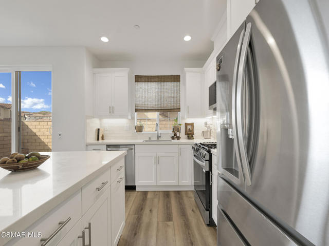WELCOME TO SOL VISTA, a highly desirable enclave within the Anacapa Canyon community, offering the perfect combination of MODERN AMENITIES and RESORT STYLE LIVING. This BEAUTIFULLY upgraded 3-bedroom, 3-bathroom home features an OPEN-CONCEPT LAYOUT enhanced by soaring two-story ceilings and numerous tall windows that flood the interior with natural light while capturing serene MOUNTAIN VIEWS. Thoughtfully designed with WIDE-PLANK WHITE OAK INSPIRED FLOORING, recessed lighting, CUSTOM blinds, decorative lighting and expansive dual-pane windows, are just some of the things that make this home truly STAND OUT. The GORGEOUS KITCHEN showcases quartz countertops with a custom backsplash, abundant white shaker cabinetry with decorative hardware, a spacious CENTER ISLAND with a sit-up breakfast bar, and stainless steel LG appliances, all seamlessly opening to the EXPANSIVE family room and dining area, perfect for entertaining or casual living. The PRIMARY SUITE serves as a PEACEFUL RETREAT, featuring a large walk-in closet and an en-suite bath with dual-sink vanity, custom tile, an enlarged glass-enclosed shower with built-in bench, and a private commode. The sizable secondary bedrooms include ceiling fans and share a well-appointed hall bathroom. A conveniently located UPSTAIRS LAUNDRY ROOM with storage adds everyday functionality. Additional HIGHLIGHTS include a two-car, direct-access garage with finished flooring, large sliding doors leading to the spacious fully fenced backyard waiting for your personal touches and tasteful decorative finishes throughout. Residents of Sol Vista ENJOY RESORT-STYLE AMENITIES including swimming pools, spas, a kiddie pool, clubhouse, 24-hour fitness center, yoga studio, BBQ areas, fire pits, cabanas, basketball courts, playground, parks, plus much more. ENJOY a lifestyle where every day feels like a VACATION. Don't miss this incredible OPPORTUNITY to make this SPECIAL home your OWN!!!