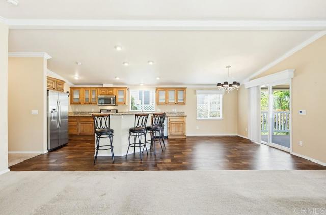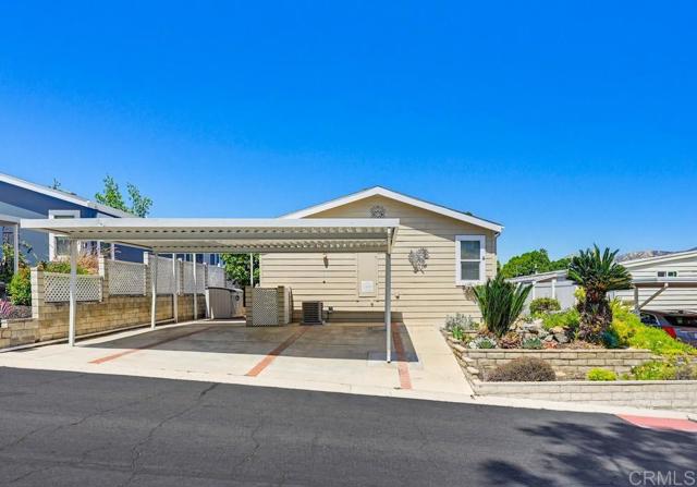 Welcome to your lake view home in the highly desirable gated 55+ community of Lake Jennings Park Estates, where you own the land and enjoy a low HOA of just $218 per month with no space rent. This beautifully maintained property is designed for easy living and entertaining, featuring a spacious open floor plan, a large kitchen island, and an abundance of cabinetry for storage and functionality. Step outside to a covered patio deck and thoughtfully designed paver backyard, complete with a charming gazebo and ceiling fan, creating the perfect outdoor retreat to relax and take in the views. Inside, the home offers three bedrooms, including a generous primary suite with a walk-in closet and built-in organizers. The exterior continues to impress with side-by-side covered parking, additional space for a golf cart, and a low-maintenance yard highlighted by a mature pink grapefruit tree and vibrant rose bushes. This is an exceptional opportunity to enjoy comfort, convenience, and scenic living in one of East County’s most sought-after communities.