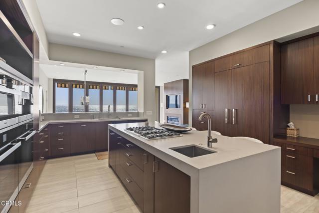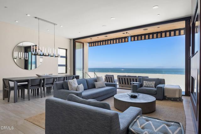 Welcome to your dream beachfront retreat on Mandalay Beach, where refined coastal living meets one of Ventura County's most expansive and walkable stretches of sand. This fully furnished home was built in 2015 and ideally positioned on a desirable semi-private beachfront street west of the main road, this beach home offers a rare blend of privacy, panoramic views, and effortless indoor-outdoor living. Designed to capture the beauty of the ocean from nearly every angle, the home showcases sweeping ocean, island, whitewater, and sunset views. The main living spaces are nothing short of spectacular, featuring soaring ceilings, a fireplace, and a dramatic wall of bi-fold glass doors that open seamlessly to a spacious beachfront deck with direct access to the sand, creating the ultimate setting for entertaining or simply unwinding to the sound of the waves. The thoughtfully designed floor plan offers five bedrooms and four-and-a-half bathrooms, complemented by multiple living areas including a formal beachfront living room, dining area, family room with fireplace, and a dedicated game room, providing both versatility and comfort for everyday living and hosting guests. Upstairs, all bedrooms are en-suite, offering privacy and elevated comfort, while the primary suite serves as a true sanctuary with its own fireplace, breathtaking ocean views, and a spa-inspired bath featuring an oversized soaking tub, expansive double-headed shower, and a luxurious walk-in closet with dual access. At the heart of the home, the chef's kitchen is outfitted with high-end finishes and premium Miele appliances, blending functionality with sophisticated design for both casual coastal living and upscale entertaining. Additional highlights include a private elevator servicing all levels, three-zone air conditioning for year-round comfort, an outdoor shower for effortless beach living, and a rare six-car garage offering ample space for vehicles, storage, and beach gear. Step outside and experience the lifestyle that defines Mandalay Beach, with wide sandy shores and incredible walkability--stroll south toward Hollywood Beach and Channel Islands Harbor or head north along miles of pristine coastline toward Ventura's scenic foothills. This is more than a home--it's a front-row seat to the Pacific, where every day feels like a vacation.