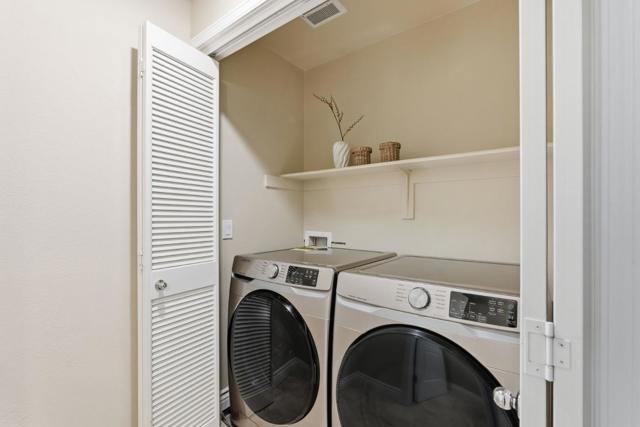 Welcome to this well-loved 2-bed, 2.5-bath townhome in the heart of North San Jose! A beautiful entry welcomes you with a natural stone accent wall and elegant marble flooring. The bright living room is filled with natural light and flows seamlessly into the kitchen and dining area. A large sliding door opens to a spacious patio with spring blooms and peaceful greenbelt views. Customized blinds and soft cotton curtains allow natural light to filter through while maintaining privacy, creating a relaxing Zen-inspired atmosphere complemented by light oak wall shelving. The gourmet kitchen features granite countertops with a full tile backsplash, a breakfast bar, and high-end appliances including a Samsung range oven and dishwasher, LG smart refrigerator, Samsung washer and dryer, and a powerful range hood, perfect for everyday cooking and entertaining. Two bedroom suites are located on the top floor, offering privacy and comfort for both owners and guests. The spacious primary suite includes two walk-in closets and an updated bathroom with double vanities and marble flooring. Prime location within walking distance to Costco, Ranch 99, parks, and golf courses. Close to restaurants, shopping, and easy access to Hwy 880 and 680, with convenient commuting via VTA and BART.