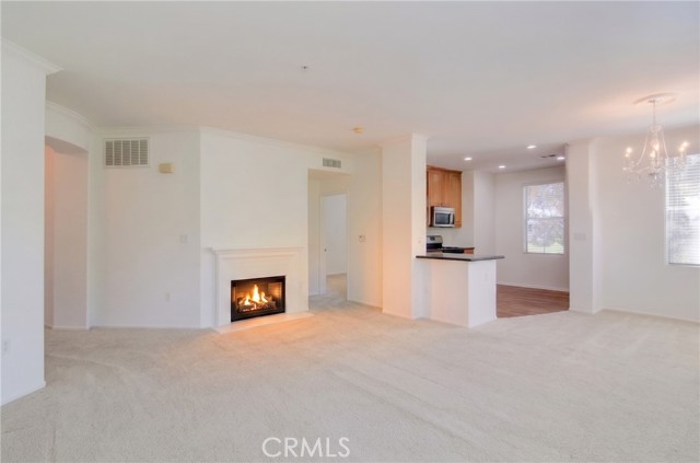 Fantastic purchase opportunity on this spacious 3-bedroom, 2-bathroom unit in the coveted 'Watermarke" community. This gated, Mediterranean-inspired community offers resort style amenities including an 8,000 sqft clubhouse, 24-hour fitness center, 3 pools (including a Jr. Olympic pool), 4 spas, tennis/sport courts, a concierge service and a movie room. Outstanding features of this unit include 3 assigned parking spaces (#887, #895, #1024), fresh interior two tone painting, spacious living room with fireplace, sunfilled dining room with a beautiful chandelier, open and bright kitchen with granite countertops, stainless steel appliances & glass insert upper cabinet doors, living room leading to a private balcony, primary bedroom with walk-in closet, primary bathroom with separate tub and shower, dual sink granite vanity, nice size bedrooms, mirrored wardrobe doors and walk-in closet, hallway bathroom with granite vanity and custom tilled walk-in shower, forced air heating and central air conditioning, inside laundry closet with side by side washer and dryer included, recessed lights and miniblinds throughout. Located in Irvine's most sought-after "Airport Area," it is close to UC Irvine, UC Irvine Medical Center, Orange County Airport, Fashion Island, South Coast Plaza, The District, popular restaurants and shopping on Michelson & Jamboree, golf courses, beaches and freeways. Don't miss out!