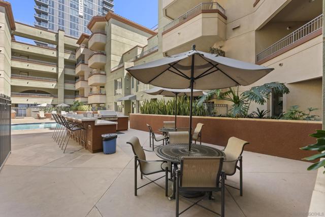 Live the best of Little Italy in this beautifully upgraded, fully furnished 1-bedroom residence at Piazza Palermo. Designed for effortless indoor/outdoor living, this home features one of the largest private patios in the building (4 patio sizes total)—a rare and highly sought-after feature that significantly enhances livability and value. Inside, the light-filled open layout showcases modern finishes, including quartz countertops, stainless steel appliances, induction oven, Fisher & Paykel dishwasher, and newer 2024 refrigerator, washer, and dryer. The seamless flow to the outdoor space creates an exceptional extension of the living area—an increasingly rare offering in downtown San Diego condos. The generous bedroom offers flexibility for both relaxation and work-from-home needs, while the turnkey, fully furnished design presents a compelling opportunity for a primary residence, second home, or investment. Located in the heart of Little Italy, you’re just moments from top restaurants, cafes, the farmers market, waterfront parks, and downtown attractions—while enjoying a quieter residential setting with convenient access to major freeways and employment centers. A rare opportunity to own a move-in ready residence with exceptional outdoor space in one of downtown San Diego’s most desirable and walkable neighborhoods—offering a unique combination of lifestyle, functionality, and long-term value.