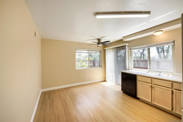 Very secluded and Spacious end unit townhome ranch style with no one above or below featuring new custom paint, newer laminated wood flooring, large living room with vaulted ceilings, newer dual pane windows and slider. Large Master bedroom with walk-in closet and large walk-in shower plus attached laundry room. Spacious Country kitchen w/access to the patio and the storage shed. Great location with canyon view and 2 assigned parking spaces. Access to the community pool, spa & tennis courts.