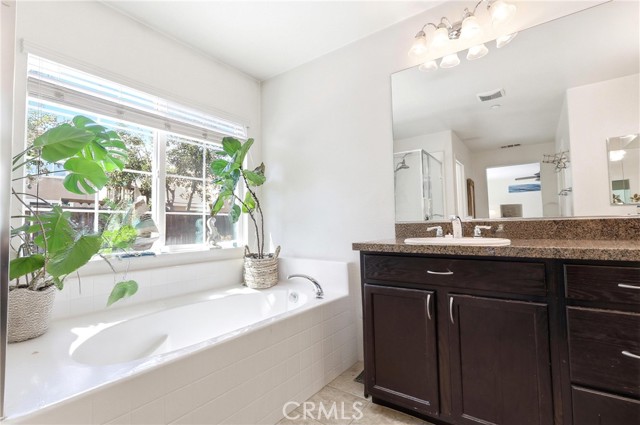 Downstairs bedroom + full bath AND HOA-approved RV parking—rarely available in Rosena Ranch! This spacious and upgraded home delivers one of the most functional floor plans in the neighborhood, featuring oversized bedrooms and a versatile upstairs loft perfect for work, study, or additional living space. The heart of the home is the beautifully designed kitchen, complete with a large center island, extensive cabinetry, reverse osmosis drinking water system, and whole-house water filtration. The open-concept layout, flows seamlessly into the main living areas, creating an ideal environment for both everyday living and entertaining. Step outside to a covered patio and enjoy a private backyard retreat featuring a jacuzzi that stays—perfect for relaxing evenings at home. Additional highlights include a tandem garage with built-in storage racks and an extended driveway offering abundant parking. A major highlight is it's location within the attendance boundary for Paakuma K-8 School, known for strong academic performance compared to state averages. The school reports 40% proficiency in math (higher than California’s 34%) and 53% proficiency in reading/language arts (above the state average of 47%). With RV parking, upgraded systems, flexible living spaces, and desirable school access, this home offers a rare combination of functionality and lifestyle in one of Rosena Ranch’s most desirable communities.