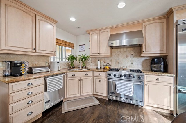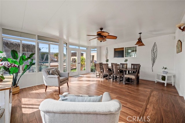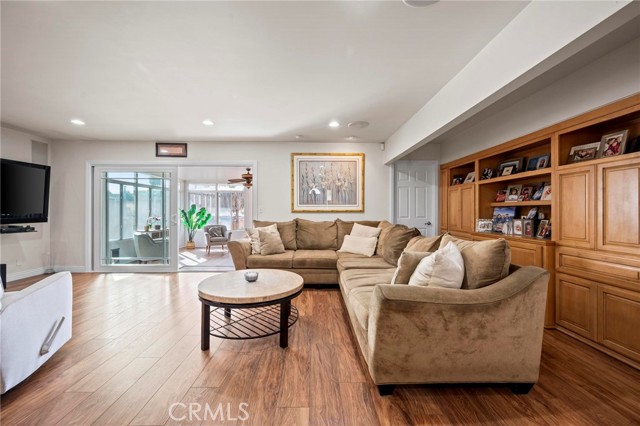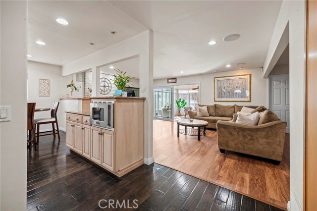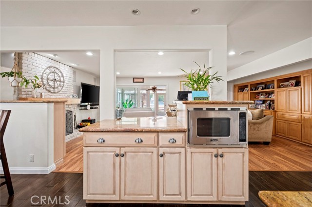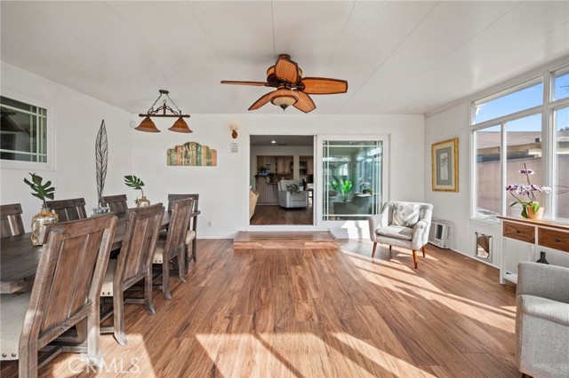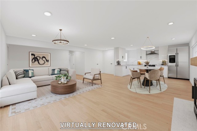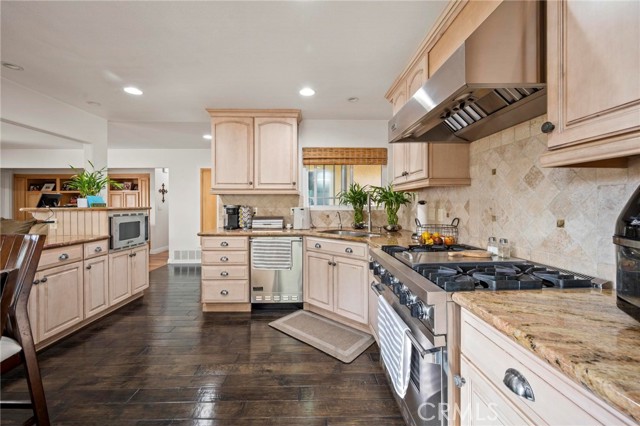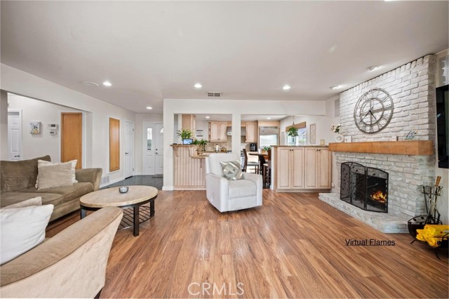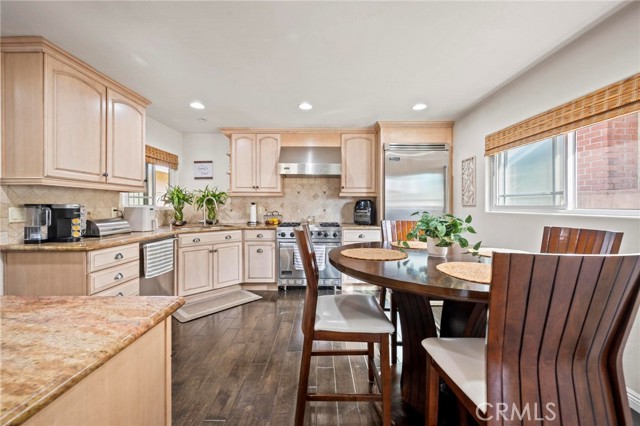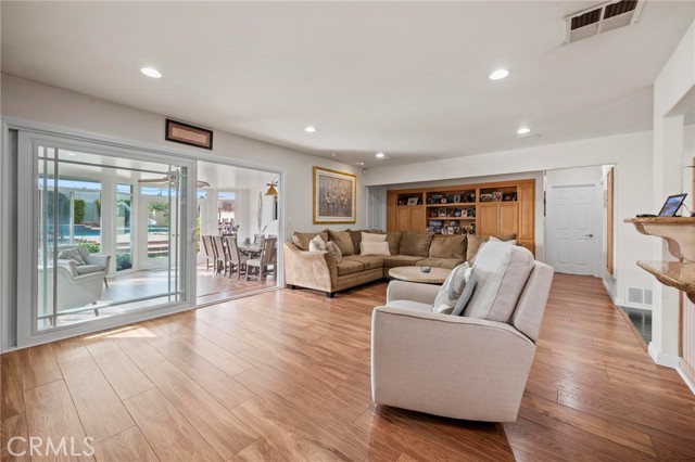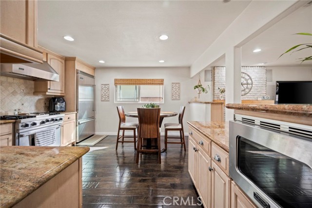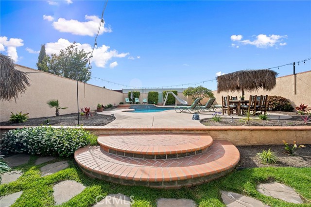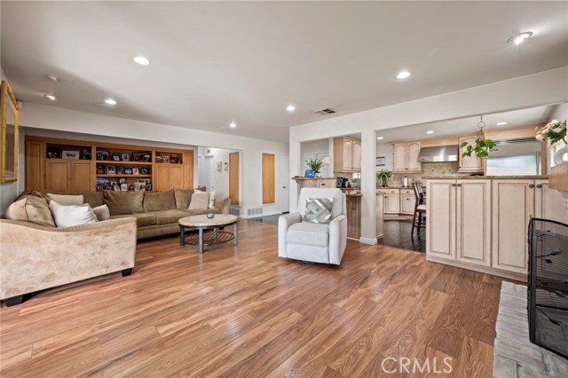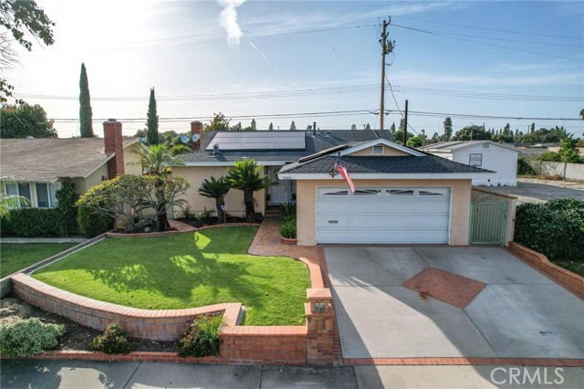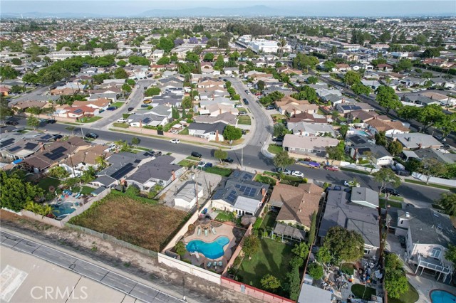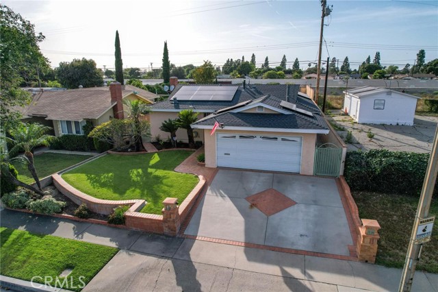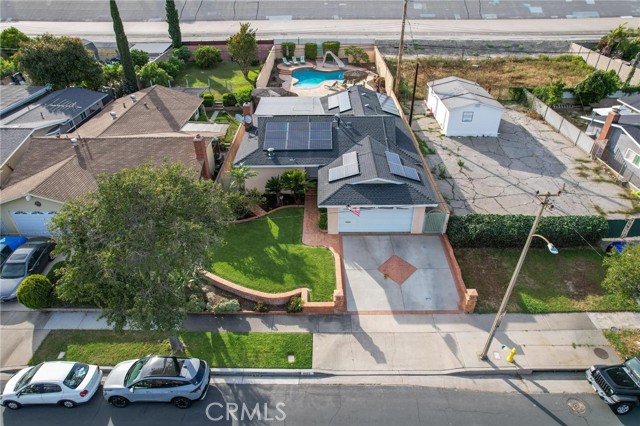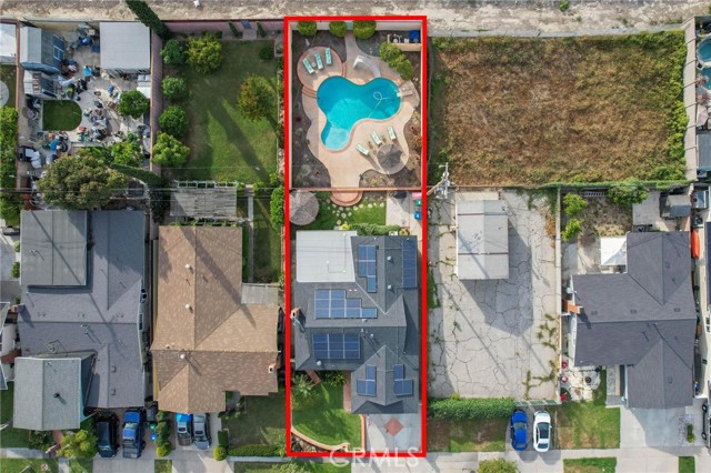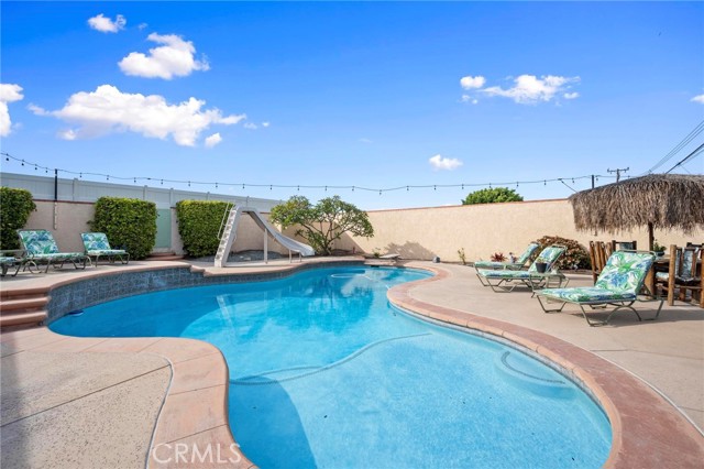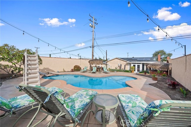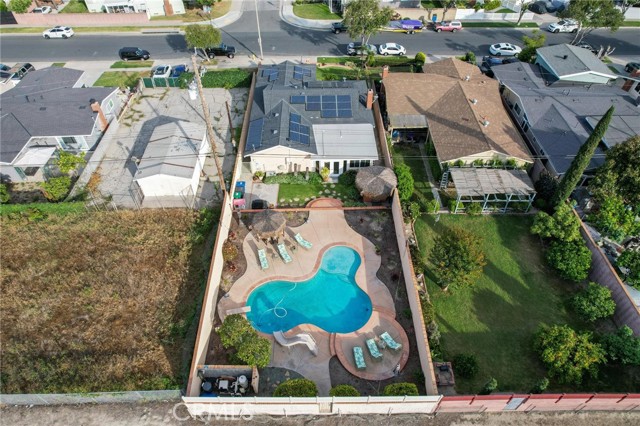 Situated in the Imperial Estates neighborhood of Long Beach on an oversized 8,000 sqft lot made up of two parcels. The open concept main living area features hardwood flooring through the entryway and kitchen, laminate flooring in the living room, recessed lighting throughout, a wood burning fireplace in the living room, and built in shelving and cabinetry along the family room wall and hallway that add warmth and storage. The kitchen flows into the main living area through a breakfast bar and features top of the line Viking stainless steel appliances including a six-burner range with hood, built in refrigerator, dishwasher, and microwave, along with granite countertops and a stone tile backsplash. Three bedrooms, including a primary suite with an en suite bathroom. A second full bathroom serves the additional bedrooms. The backyard is built for entertaining, with an in-ground pool, a separate hot tub tucked under a tiki cabana, a grass area, and BBQ space. Additional features include an attached two car garage, a roof replaced in March 2021, and an active solar system. Conveniently located near shopping, dining, and freeway access.