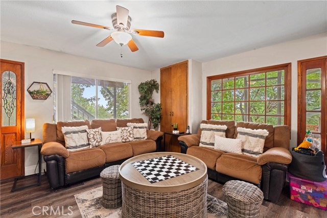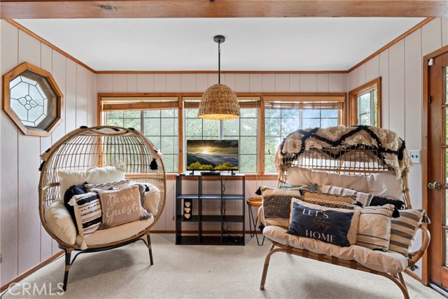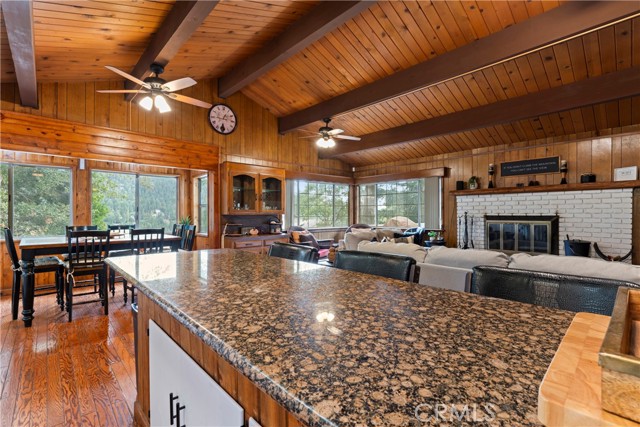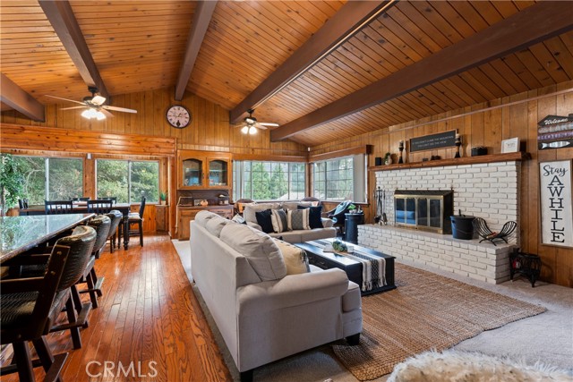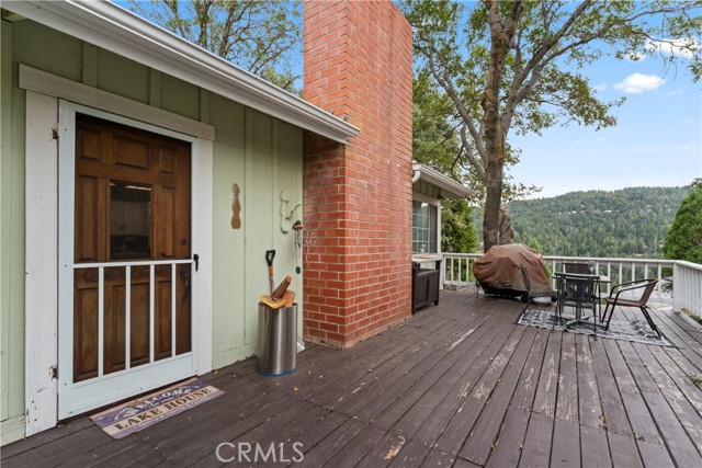 Your Mountain Retreat Awaits. Dreaming of a peaceful mountain getaway with room for everyone? This inviting home blends warmth, comfort, and breathtaking views. Step inside and unwind by the cozy brick fireplace, the perfect spot for winter evenings after a day outdoors. The main level offers a spacious game room, three bedrooms, one and a half baths, and brand new laminate flooring - ideal for family gatherings or weekend guests. Upstairs, light floods into the expansive living and dining area, designed with sweeping vistas to frame your every day. The master suite opens onto a private deck, where you can sip your morning coffee while soaking in the mountain air. A guest room and additional full bath add even more flexibility for family and friends. The heart of the home, the kitchen, features freshly painted cabinets, granite countertops, and a generously sized eating island, perfect for both casual meals and entertaining. Recent upgrades include a new deck, roof and paint. Outdoor living truly shines here with a large entertainment area complete with an outdoor kitchen, bar, and multiple balconies - your own private setting for unforgettable summer evenings under the stars. Centrally located near Lake Gregory, Lake Arrowhead, and popular mountain attractions, this home delivers the serene mountain lifestyle you’ve dreamed of, with convenience never far away.