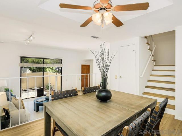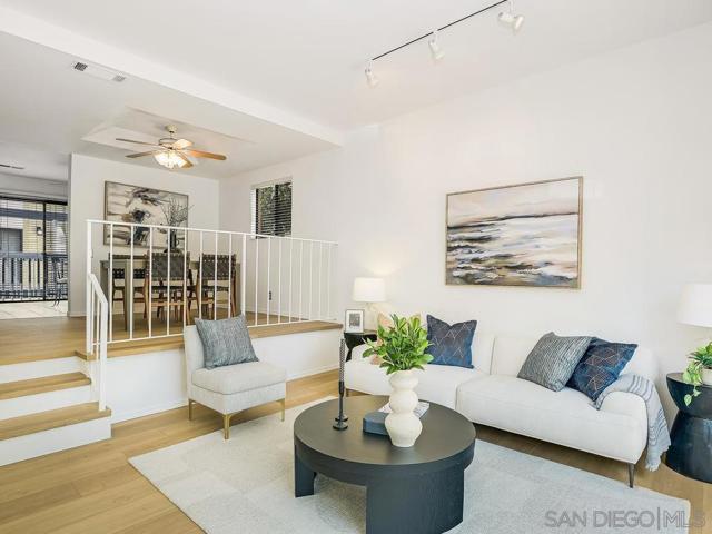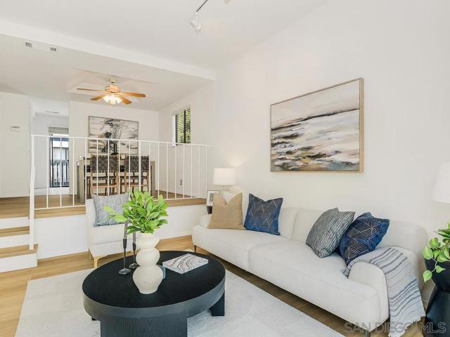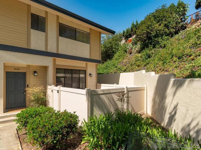 Welcome to 3668 Marlesta Drive, a bright, quiet and inviting townhome that offers space, style, and comfort in a central San Diego location close to downtown, airport and the beach. This well-designed home features soaring ceilings, abundant storage, and an effortless indoor-outdoor flow. The spacious living room is anchored by a cozy fireplace and opens to a private patio, creating the perfect setting for relaxing or entertaining. Overlooking the living space, the dining area connects seamlessly to the kitchen, offering an open yet well-defined layout. The kitchen features abundant cabinetry, ample prep space, and an adjacent breakfast area with access to a private balcony, filling the home with natural light. Upstairs, you’ll find two generous primary suites with vaulted ceilings, creating comfortable and private retreats. A separate laundry room conveniently located near the bedrooms adds ease to everyday living.