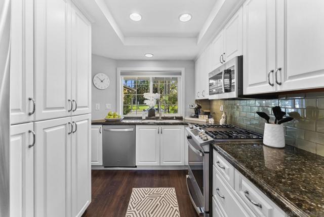 Rarely does a single-story home in one of La Costa’s most desirable neighborhoods become available with this level of upgrades, privacy, and lifestyle appeal. Opportunities like this do not last long. With 2 bedrooms and 2 bathrooms, this move-in ready residence offers the ideal blend of comfort, convenience, and low-maintenance coastal living. Step inside to soaring vaulted ceilings, an open and airy floor plan, and abundant natural light that creates an immediate sense of space and warmth. Thoughtfully improved throughout with newer dual-pane windows, luxury vinyl plank flooring, central A/C, and beautifully remodeled bathrooms, the home is ready to enjoy from day one. The spacious primary suite offers a peaceful retreat with room to unwind and recharge. The backyard is a standout feature—private, low maintenance, and designed for entertaining. Enjoy turf, a built-in BBQ, and seating area overlooking open space, creating the perfect setting for sunset dinners, weekend get-togethers, or peaceful mornings outside. Major value-add improvements include a brand new roof completed in April 2026. Located just steps to expansive greenbelts, the community park, and pool, with quick access to top-rated Encinitas Union School District schools, shopping, dining, golf, and North County’s best beaches, this home checks all the boxes. Single-level homes in this location are always in demand—don’t miss your chance to secure one of the best values currently available in La Costa.