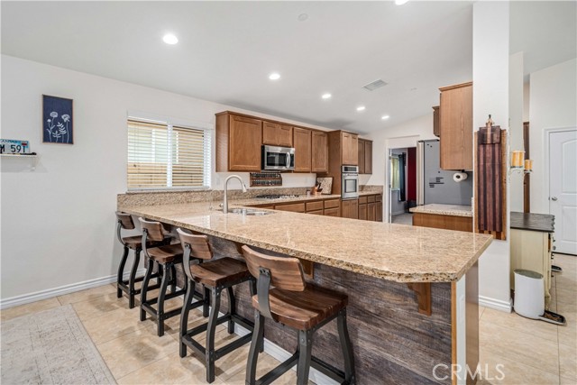 ***LIVE BEAUTIFULLY*** Single Story West Lancaster Home w/ Fully Paid Solar, An Open Floor Plan, And A Spacious Backyard! Welcome to this well-maintained home featuring vaulted ceilings, recessed lighting, and a bright, open layout that creates an inviting feel throughout. The family room offers a spacious and comfortable setting with an open-concept design that seamlessly connects to the kitchen, featuring a cozy fireplace and large windows with a sliding glass door that provide natural light and direct backyard access, creating an ideal space for everyday living. The kitchen is thoughtfully designed with functionality in mind, featuring granite countertops, extensive cabinetry for abundant storage, and a spacious wraparound layout that provides plenty of prep space. Rich wood cabinetry adds warmth while offering a large number of drawers and cabinets for organization. Stainless steel appliances enhance the space, while the peninsula with barstool seating creates a natural gathering area and opens seamlessly to the main living space. The kitchen also showcases a separate dining area. A window over the sink brings in natural light, and the adjacent dining area makes the layout ideal for both casual meals and everyday use. The spacious primary suite offers private outdoor access, a large walk-in closet, and an upgraded bathroom with dual vanities, updated countertops, a soaking tub, and a floor-to-ceiling glass walk-in shower. The home is completed with four additional bedrooms and two additional bathrooms. Step outside to a generously sized backyard featuring an extended covered patio that spans the rear of the home, complete with lighting and an outdoor ceiling fan, a large grassy area, a separate concrete seating space, and a spacious side yard, offering a functional layout with both shaded and sun-filled areas to enjoy. This home combines comfort, functionality, and energy efficiency with fully paid solar, making it a must-see opportunity in West Lancaster—schedule your private showing today!
