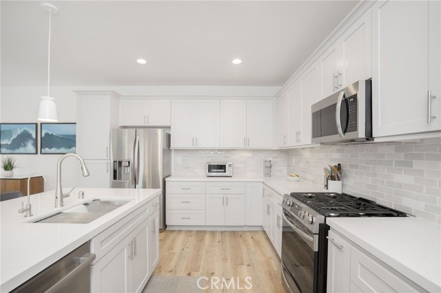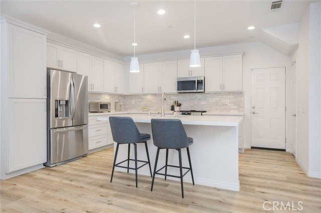 This tastefully remodeled Orbela condo offers more than just modern upgrades and timeless design; it provides a front-row seat to the best of California coastal living. Whether you are an avid surfer, a sunset enthusiast, or someone who thrives on the thrill of charter fishing, diving or whale watching, this property brings the very best of beachside activities right to your doorstep. As the largest floor plan, this premier end-unit is nestled in the best location within the development, tucked away in the back corner for increased privacy compared to interior units. Soaring ceilings grace the entryway & flood the open-concept main level with natural light. Custom wooden shutters offer both style & privacy, while a sleek electric fireplace adds a warm cozy vibe. Seamlessly integrated into this space is the reimagined chef’s kitchen equipped with premium quartz countertops, a subway tile backsplash, stainless steel appliances and a sprawling center island, making it the heartbeat of the home. The upper level is intelligently designed for modern living. A versatile, spacious loft separates the secondary bedrooms from the primary suite, providing an ideal footprint for a home office, theater or 4th bedroom. (Tax records reflects 4 bedrooms) All bathrooms have been remodeled but the primary ensuite boasts a massive walk-in shower wrapped in floor-to-ceiling designer porcelain tile, marble tile flooring, and features dual shower heads for a fully immersive experience. Other amenities of this turnkey residence include an upstairs laundry room with an LG washer & dryer, direct access 2-car garage, a gated patio, low HOA and easy access to the 101 & 126 freeways.