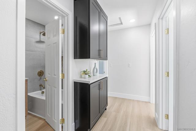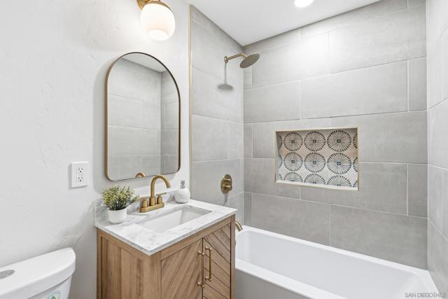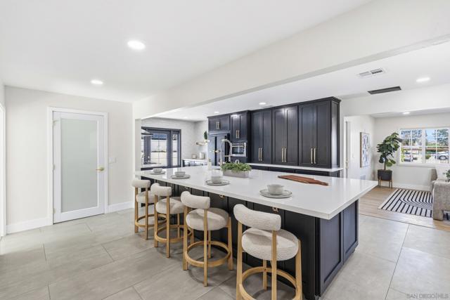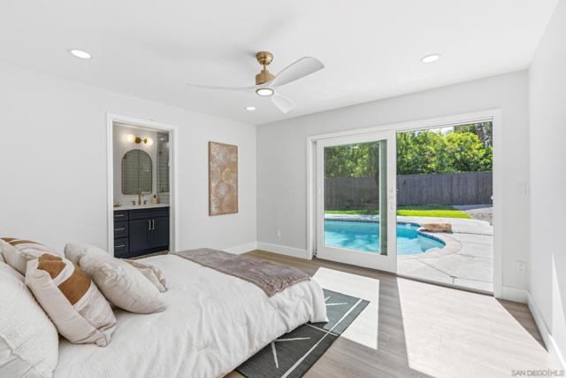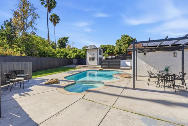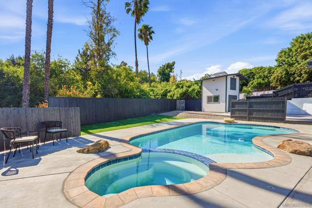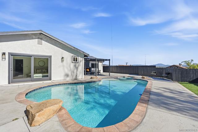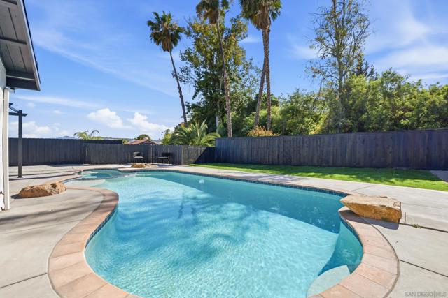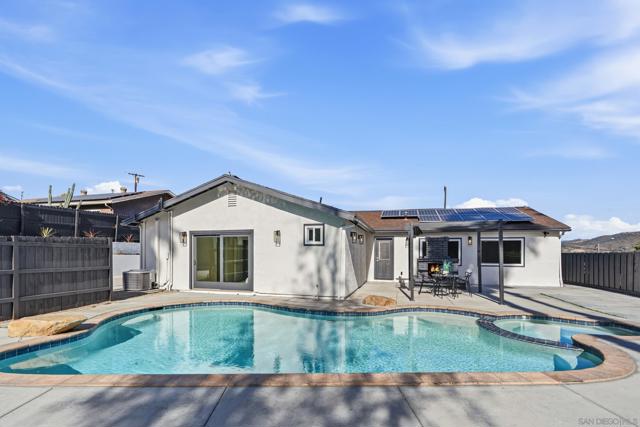 Stunning Remodeled Pool Home with Paid Off Solar on Expansive Lot in Santee. Welcome to 9632 Cambury Dr, a beautifully remodeled 4 bedroom, 3 bathroom home offering modern upgrades, flexible living, and resort style outdoor space. Situated on a 10,000+ sqft lot, this property delivers the space and functionality buyers are looking for. Inside, you’ll find a bright open layout with modern flooring, new light fixtures, and fresh interior and exterior paint throughout. Two of the bedrooms feature en suite bathrooms, providing ideal options for multigenerational living or private guest spaces. The chef’s kitchen is a true centerpiece, featuring a 12 foot island, tile flooring, and premium Big Chill appliances including a statement refrigerator, 6 burner range with pot filler, and a wine fridge in the bar area. Step outside to your private backyard retreat with a sparkling pool and spa, perfect for entertaining or relaxing. The oversized lot also offers a large driveway with room for RV parking, a boat, and additional toys, a rare find in this area. The bonus shed is perfect for storage or an office. Located in a desirable Santee neighborhood near parks, schools, shopping, and dining, this home offers the perfect blend of comfort, style, and convenience. The seller has never occupied the property and has very limited knowledge of property condition or history. All measurements are approximate. Buyer's and Buyer's Broker/Agent should verify measurements and complete thorough inspections and investigations prior to Close of Escrow to satisfy themselves with the current condition of the property. Buyer(s) to verify and approve all data, reports, records, inspections, permits, MLS, HOA, if applicable and all information pertaining to the property prior to removal of contingencies. All contracts/offers are subject to seller approval and any offers or counteroffers by seller are not binding unless the entire agreement is ratified by all parties.
