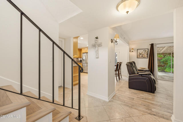 Welcome to this beautifully maintained and thoughtfully updated 4-bedroom, 3-bathroom home offering 1,580 square feet of comfortable living space on a generous 6,098 square foot lot. With a highly desirable layout that includes a full bedroom and bathroom downstairs, this home is perfect for guests, multi-generational living, or a private office setup. Step inside to an inviting open-concept kitchen and family room, ideal for everyday living and entertaining. The kitchen was tastefully upgraded and flows seamlessly into the main living area, creating a warm and functional heart of the home. Recent updates provide peace of mind and modern appeal, including fresh interior paint and brand-new upstairs flooring completed just one month ago. The home also features updated bathrooms, hot water re-pipe. Additional improvements over the years include upgraded baseboards, downstairs flooring, and a reimagined staircase. Outdoor spaces are equally impressive, with a landscaped front yard featuring turf and plants, an extended cement driveway for extra parking or possible RV access. A spacious and well shaded backyard, includes brick tile ground covering and an electrical setup ready for a spa. A recently installed garage door and added rafter storage enhance functionality, while the garage also offers potential for an ADU conversion. Located in a welcoming and vibrant neighborhood, you'll love the strong sense of community--especially during festive occasions like Halloween when neighbors come together to celebrate. Close proximity Rancho Park offers an exceptional lifestyle with ducks, playgrounds, tennis courts, pickleball, and summer concerts and Frontier park which is directly behind the home. Enjoy convenient access to nearby walking paths along the paseo. Highly regarded schools are also within 1-2 miles. This home combines comfort, convenience, and community--an ideal place to settle in and enjoy for years to come.