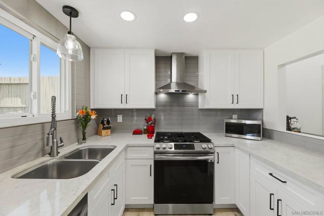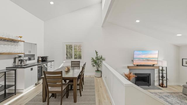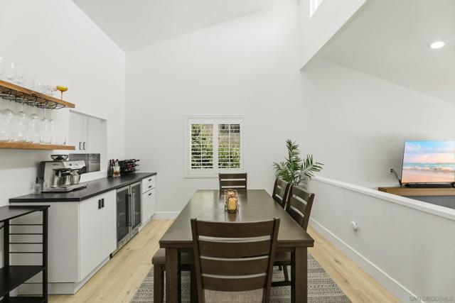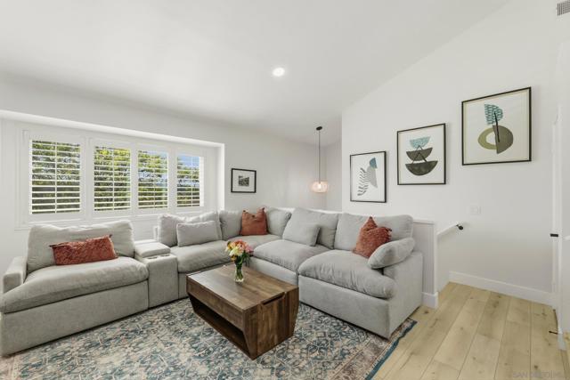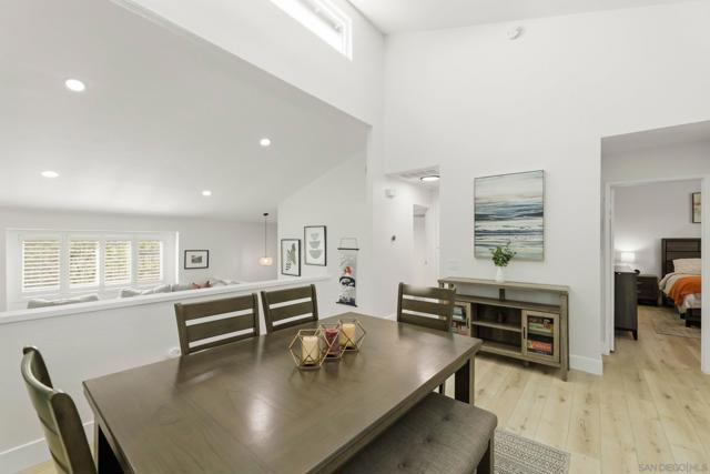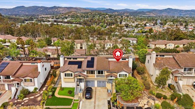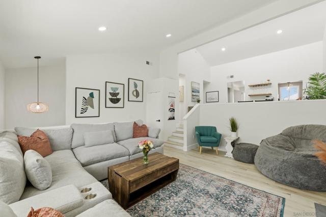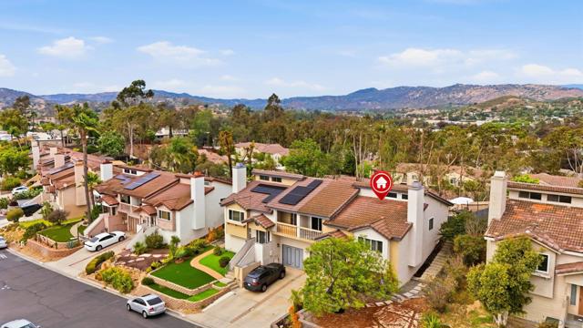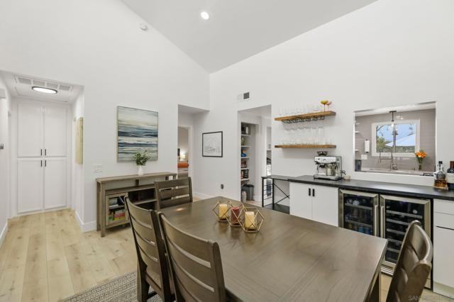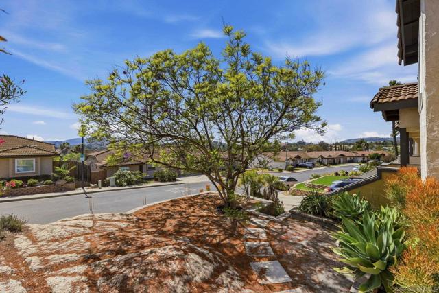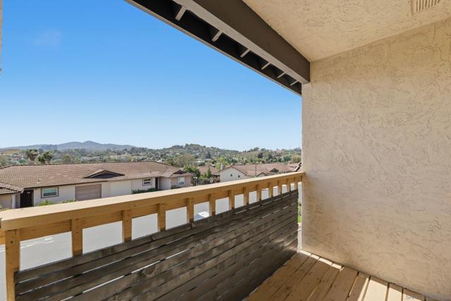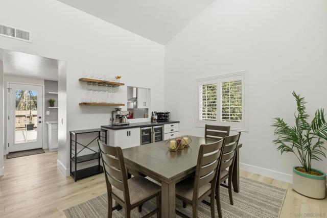 Welcome to this beautifully remodeled 2-bed, 2-bath townhome nestled in the sought-after Avocado Estates community. Fully updated in 2023, this 1,215 sq ft home offers a turnkey living experience with high-end finishes throughout. Soaring vaulted ceilings in the living and dining rooms create an open, airy atmosphere filled with natural light. The well equipped kitchen features quartz countertops, stainless steel appliances, and a custom bar area with a dual-zone beverage refrigerator, perfect for entertaining. Laminate flooring flows throughout the home, complementing the fresh, modern aesthetic. A side-by-side washer/dryer conveniently located inside the unit. Both bedrooms are generously sized, and the home includes an oversized one-car garage with direct access. Step outside to a beautifully landscaped backyard retreat with sweeping mountain views, an ideal space to unwind. Professionally landscaped front and rear yards complete the picture. The Avocado Estates community offers a sparkling pool + jacuzzi, while the surroundings deliver everything North Escondido has to offer. Minutes from the I-15 at El Norte Parkway, and enjoy easy access to nearby shopping, dining, and grocery stores. Outdoor enthusiasts will appreciate proximity to Kit Carson Park, Felicita County Park, and scenic trails throughout the area. The SPRINTER light rail line is also nearby for added connectivity. This is North Escondido living at its finest, move-in ready, meticulously upgraded, and priced to impress. Possible VA Assumable loan, ask agent for details.
