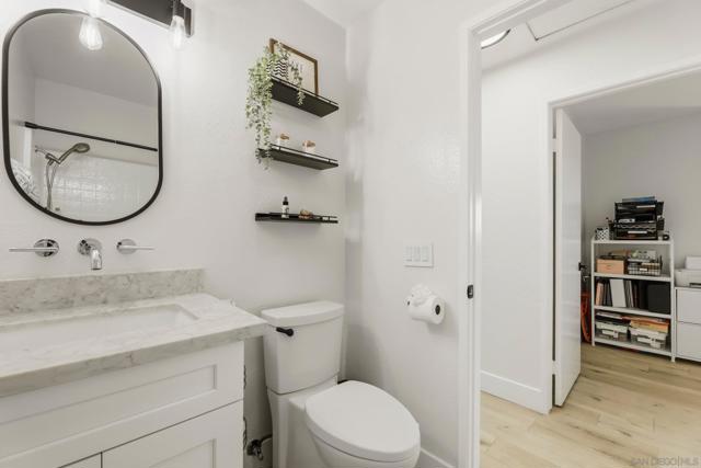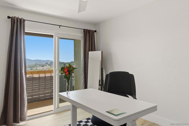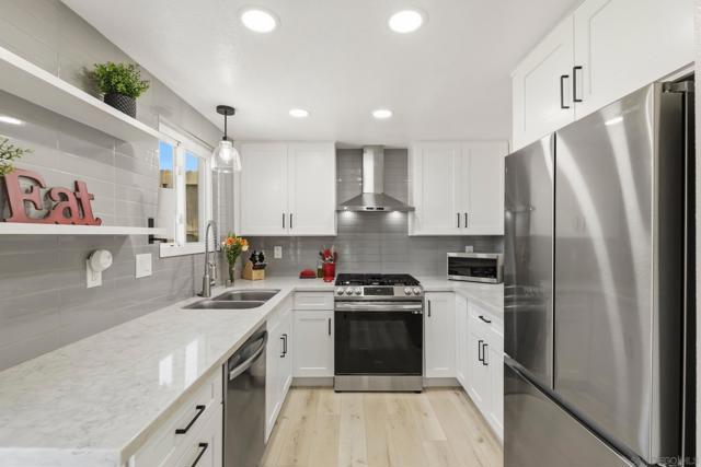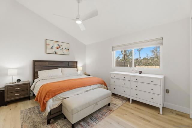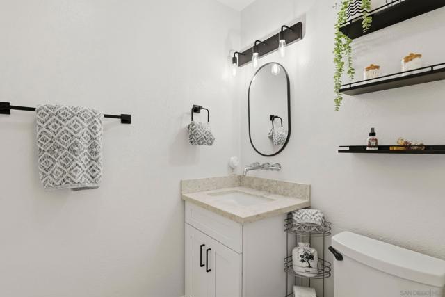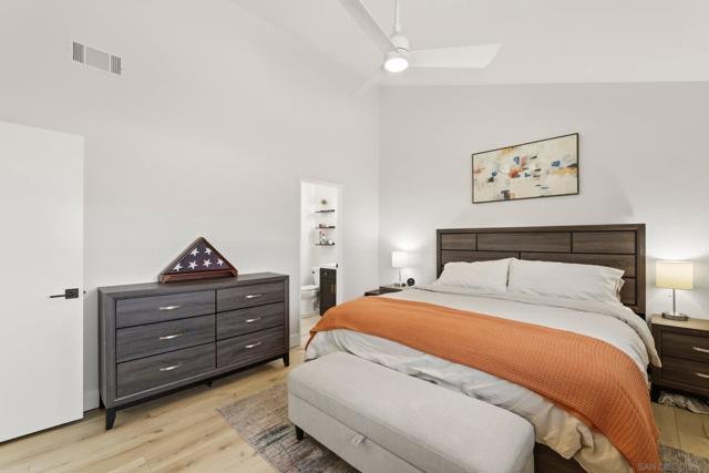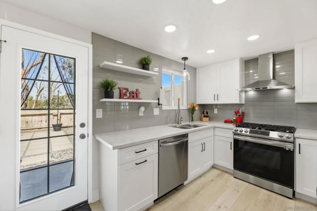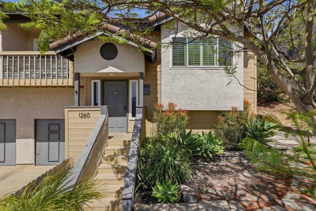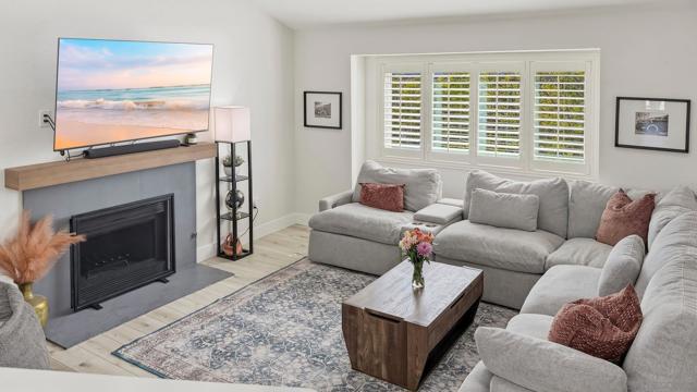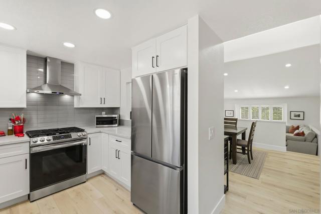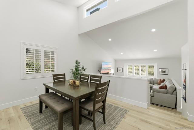 Welcome to this beautifully remodeled 2-bed, 2-bath townhome nestled in the sought-after Avocado Estates community. Fully updated in 2023, this 1,215 sq ft home offers a turnkey living experience with high-end finishes throughout. Soaring vaulted ceilings in the living and dining rooms create an open, airy atmosphere filled with natural light. The well equipped kitchen features quartz countertops, stainless steel appliances, and a custom bar area with a dual-zone beverage refrigerator, perfect for entertaining. Laminate flooring flows throughout the home, complementing the fresh, modern aesthetic. A side-by-side washer/dryer conveniently located inside the unit. Both bedrooms are generously sized, and the home includes an oversized one-car garage with direct access. Step outside to a beautifully landscaped backyard retreat with sweeping mountain views, an ideal space to unwind. Professionally landscaped front and rear yards complete the picture. The Avocado Estates community offers a sparkling pool + jacuzzi, while the surroundings deliver everything North Escondido has to offer. Minutes from the I-15 at El Norte Parkway, and enjoy easy access to nearby shopping, dining, and grocery stores. Outdoor enthusiasts will appreciate proximity to Kit Carson Park, Felicita County Park, and scenic trails throughout the area. The SPRINTER light rail line is also nearby for added connectivity. This is North Escondido living at its finest, move-in ready, meticulously upgraded, and priced to impress. Possible VA Assumable loan, ask agent for details.