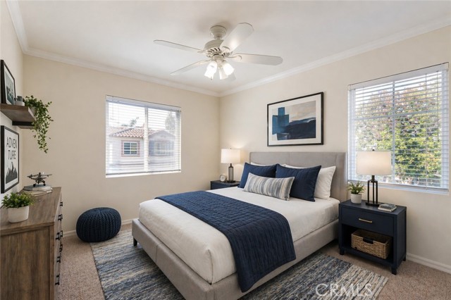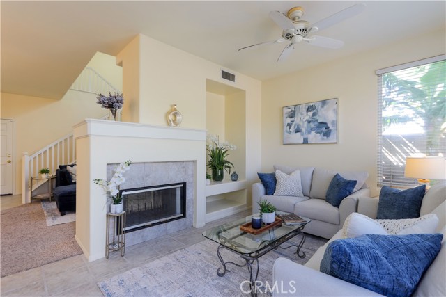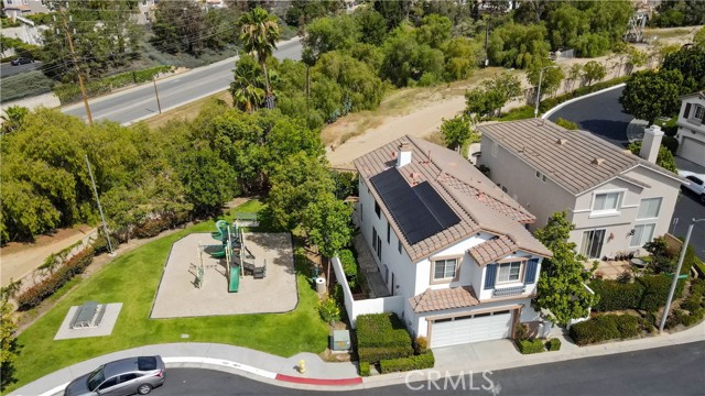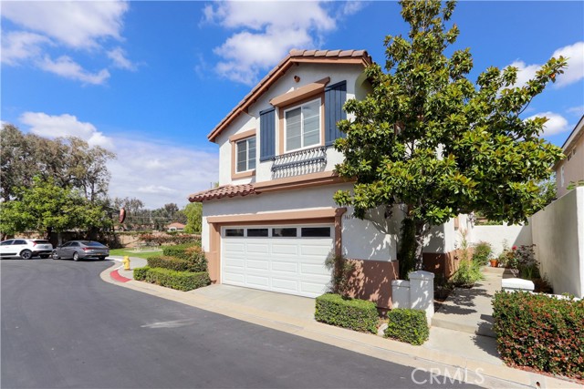 Beautifully maintained home for sale, built in 1998, located in the highly desirable gated Mariposa Lane community of Placentia, CA. This detached PUD residence offers 3 bedrooms, 2.5 bathrooms, and approximately 1,715 square feet of living space, including a fully paid off Tesla Solar System. Although it is classified as a condo, it gives the feel of a single-family detached home. Enter through a private courtyard into a light-filled interior featuring an open floor plan and dramatic vaulted ceilings. The main level includes a living room with a dining area and a family room, separated by a cozy dual-sided fireplace, creating an ideal space for entertaining. The upgraded kitchen shows new quartz countertops, a new stove, and direct access to the backyard. Additional highlights include a newly painted interior, recessed lighting throughout, a spacious powder room, and an attached 2-car garage with built-in storage and cabinets. Upstairs, all bedrooms provide privacy and comfort. The primary suite features scenic mountain views, a large walk-in closet, and an ensuite bathroom complete with a sunken tub, walk-in shower, and dual sink vanity. An individual laundry room makes life easier. The backyard is perfect for entertaining, offering ample space and multiple fruit trees. Ideally situated at the end of a cul-de-sac next to a play area, this home enjoys added privacy with no rear neighbors and is conveniently located near top-rated schools, shopping, dining, and with easy access to the 91 and 57 freeways. Community amenities include a swimming pool and playground. Low HOA dues and no Mello Roos.