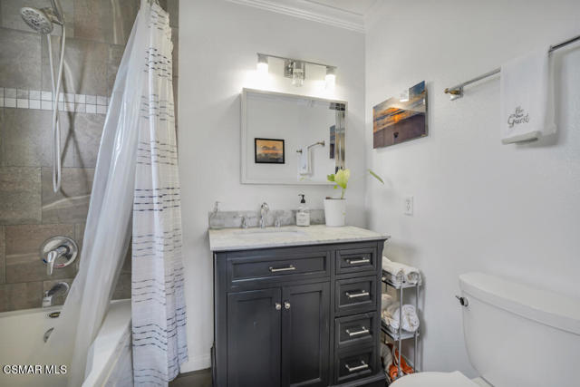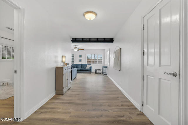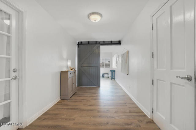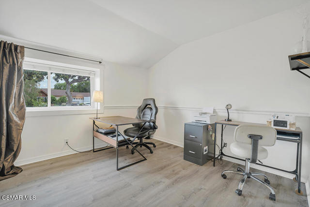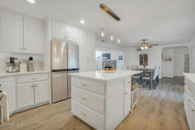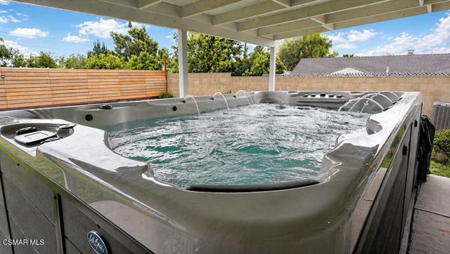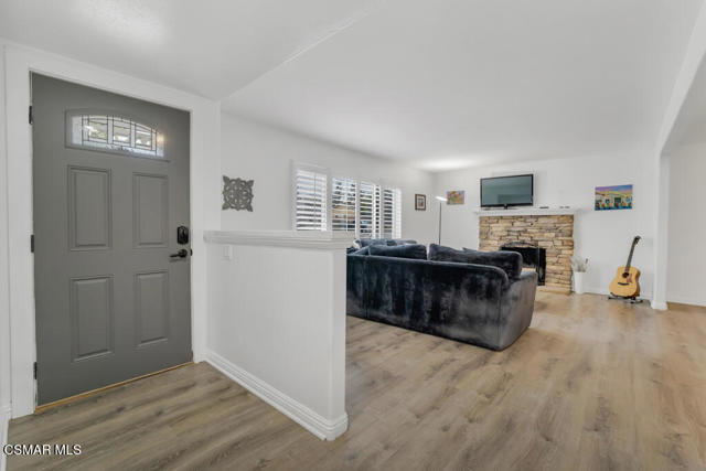 Set on a cul-de-sac street in Simi Valley's established Texas Tract, this single-story home offers 4 bedrooms, 2 bathrooms plus an office and additional living space on an 11,325 sq. ft. lot. Known for itslarger lots, central location, and single-story homes, the Texas Tract continues to attract buyers seeking space, flexibility, and everyday convenience. An extra-wide concrete and brick-lined driveway creates awelcoming approach. Inside, a clean white and gray palette pairs with newer wood-like vinyl plank flooring throughout. The living room is centered around a stacked stone gas fireplace, with a large front-facing window and shutters bringing in natural light. A wide archway connects to the dining area with aceiling fan/light and slider to the backyard, supporting indoor-outdoor flow. The remodeled kitchen features quartz countertops, white cabinetry, a center island with pendant lighting, recessed lighting,under-cabinet lighting, and a full tile backsplash. Stainless steel appliances complete the space, while a window above the sink looks out to the backyard. A glass display cabinet offers a place to showcasedecorative pieces while adding storage. Off the kitchen, the laundry room includes washer and dryer, overhead storage, and backyard access. A flexible addition expands the layout to a true 4-bedroom home, along with a separate office and additional family room area. This extended space includes abedroom with closet, an office or storage room with wall A/C, and a separate living area with ceiling fan and double closets, currently used as a playroom. An additional section behind barn-style doors offersspace for a sitting area, media room, or family room--providing flexibility for a variety of living needs. Along the hallway, two coat closets and a linen closet provide added storage. The updated hall bathroomincludes a modern vanity with above-counter sink, built-in linen storage, and a tiled shower with glass enclosure. Two secondary bedrooms offer comfortable space for family, guests, or office use, including one with chair railing, a closet organizer, and a front-facing garden window. The primary bedroomincludes two closets, a ceiling fan/light, and an ensuite bathroom with tub/shower combination, shampoo niche, quartz countertop vanity, and updated lighting. Newer HVAC system installed in 2025. Outdoors, the backyard opens to a largegrass area with room to expand or explore potential ADU use (buyer to verify). A covered patio includes a newer 12' x 8' swim spa, with side planters, block walls, white vinyl fencing, a wood fence dividing the yard, andan iron side gate. Additional highlights include owned solar, a whole-house generator with bypass system, and no HOA. Close to Big Springs Elementary, Valley View Middle School, Simi Valley High School, Simi Hill Golf Course, parks, shopping, dining hiking trails and the 118 Freeway.