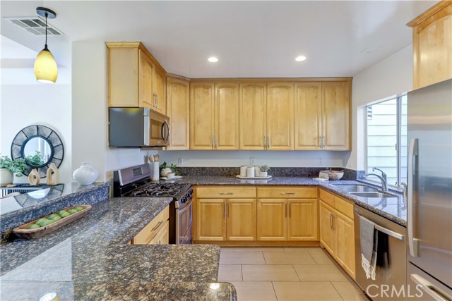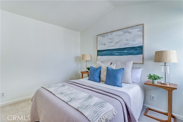 Lovely two-story condo with a fantastic layout and a HUGE amount of PRIVATE outdoor living space! Boasting over 1,300 sq. ft. (inside) and 400+ sq. ft. (outside), with three bedrooms, two and a half baths and two private patios, this unit feels more like a single-family home!! A pretty garden path through this small well-kept complex leads to the private rear corner entrance. High ceilings greet you and lots of windows throughout create an open airy feel and bring in light all day long. The remodeled kitchen has shaker style soft close cabinets, granite counters, lots of storage and counter space, and pendant lighting. The kitchen is open to the dining and living rooms creating an easy living flow. The dining area fits a large table and has a classic chandelier and tray ceiling. Sliding doors lead to the first patio - grab your coffee and enjoy! The living room, also a very good size, has a fireplace perfect for those cozy nights in. Outside a HUGE patio awaits – there is room here for an outdoor living room AND outdoor dining (and even more room after that!!). Also downstairs is a cute remodeled half bath, a separate laundry room (full size side-by-side!) and lots of extra storage. All the bedrooms are upstairs. The second-floor primary bedroom is quite large and has cathedral ceilings which give it an open airy feel and lots of windows which bring in natural light. The primary bathroom has been remodeled and has a floating sink, custom tile and large walk-in shower. The other two bedrooms are also very good sized, one with a walk-in closet. Additional highlights include a tankless water heater, central air and heat, recessed lighting, fresh paint and new carpet. There are two side-by-side parking spaces with super easy access to the home from the back stairs AND a private storage closet in the parking area. All that plus a fantastic Long Beach location just minutes from the beach, Cal State Long Beach, shopping, restaurants, nightlife, outdoor recreation, public transport and freeways. Hurry! You will not want to miss this one!