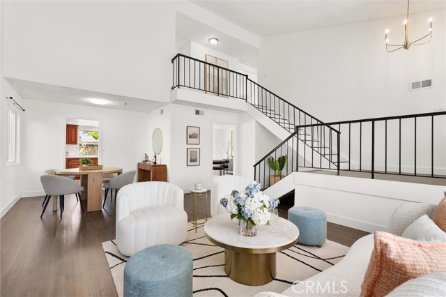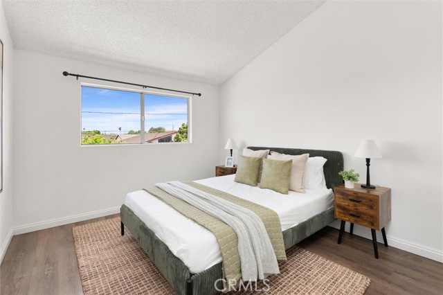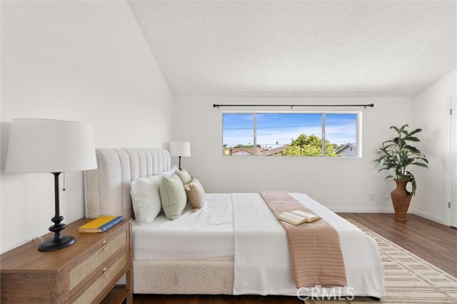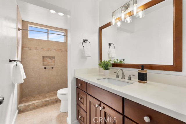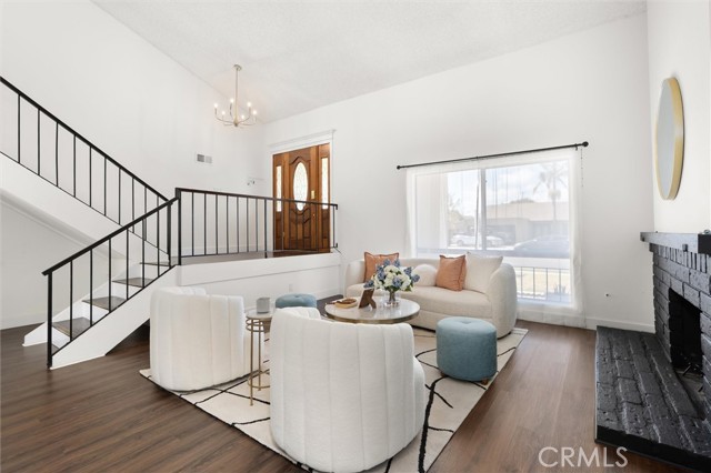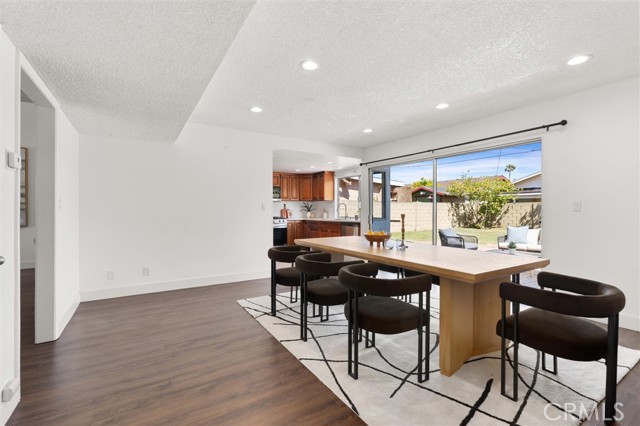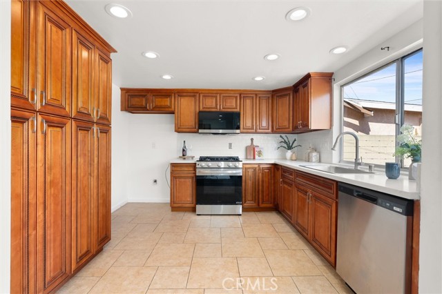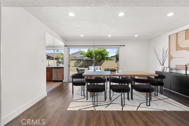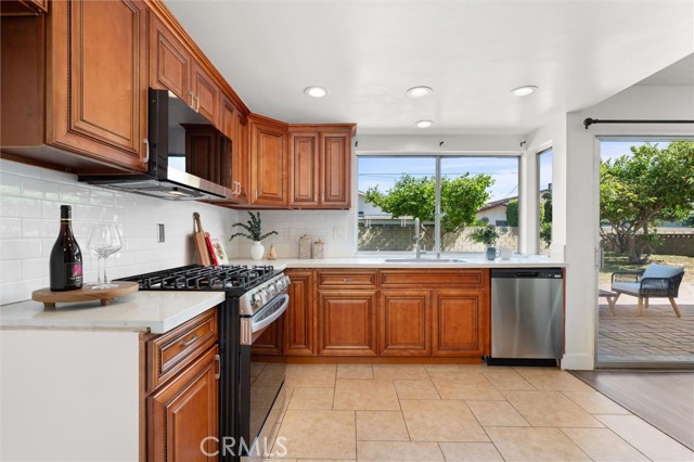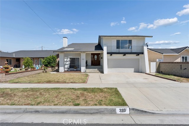 Welcome to this 1968 executive-style split-level home, tucked away on a quiet cul-de-sac. With 5 bedrooms, 3 bathrooms, and 2,404 square feet of living space, there’s room for everyone to spread out and feel at home. As you step inside, you’ll immediately take in the openness of the layout, enhanced by vaulted ceilings that create an airy, expansive feel—from the formal living room with its classic fireplace, to the cozy breakfast nook, the updated kitchen with quartz counters and a brand-new stainless range and microwave, and the spacious dining room that’s perfect for gathering.The main level also features a generous bedroom and a beautifully remodeled bathroom with a walk-in shower—an ideal setup for multi-generational living or guests. You’ll also find direct access to the two-car garage, complete with a laundry area and extra storage. Upstairs, there are four additional bedrooms, including a spacious primary suite with its own ¾ bath and walk-in closet. The standout is the oversized fifth bedroom—currently used as a flex space, but easily convertible into a larger primary suite, two additional bedrooms, or a family room. So many possibilities! A full bathroom completes the upper level.If outdoor living is on your wish list, the backyard delivers—featuring a large brick patio, a generous grassy area, and multiple fruit trees including guava, persimmon, and citrus. It’s the perfect spot to relax, entertain, and enjoy a laid-back Sunday barbecue. There’s even room to add a pool! With fresh exterior paint, an updated kitchen, laminate and tile flooring throughout, and refreshed bathrooms, this home is move-in ready. Conveniently located near freeway access, schools, shopping, and Veterans Park, this is one you won’t want to miss!