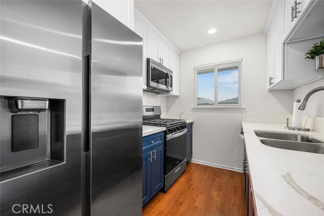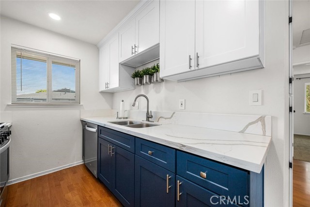 Welcome to this newly updated 2 bedroom/1 bath condo in the heart of Huntington Beach! Upper end unit shows light & bright and is tucked away in a quiet neighborhood with interior location. You’ll enjoy the open floor plan with dual-pane vinyl windows, laminate flooring, ceiling fans, ample storage/closet space, and a private balcony. The modern galley kitchen offers quartz countertops, a gas range, stainless steel appliances and self-closing cabinets. Bathroom has new vanity, mirrored medicine storage cabinet, and a reglazed tub. The complex offers green belts, a pool, basketball court, picnic area, plenty of parking and low HOA dues. Centrally located to downtown Huntington Beach, the Pier, restaurants, coffee spots, shopping, and convenient freeway access. Come see all that this turnkey condo, that’s close to the coast, has to offer!