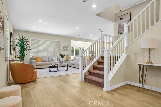Located in the highly sought-after FivePoint Valencia community, this beautifully upgraded home offers the perfect blend of comfort, style, and functionality. Thoughtfully designed with a warm and inviting atmosphere, the home is filled with abundant natural light and features an open-concept layout ideal for modern living. The gourmet kitchen seamlessly connects to the main living areas, creating a bright and airy space perfect for both everyday living and entertaining. Wood flooring extends throughout the main living spaces, while the bedrooms and staircase are finished with soft carpeting for added comfort. The dining area opens to a spacious backyard, providing an ideal setting for family gatherings, outdoor dining, and relaxation. Upstairs, a versatile bonus room offers the perfect space for a home office, media room, or additional living area to suit your needs. Located in a vibrant master-planned community with exceptional amenities, this home offers not just a place to live, but a lifestyle to enjoy. Residents of FivePoint enjoy a vibrant, resort-style lifestyle with access to multiple sparkling pools complete with cabanas and BBQ areas, a thoughtfully designed community garden with fire pits and raised planters, the highly regarded Verve Park, and regular neighborhood gatherings at “The Porch” that bring the community together. Ideally situated near top-rated schools, shopping, dining, and major freeways, the location offers both everyday convenience and long-term value. More than just a home, this is an opportunity to step into a dynamic and connected lifestyle from day one.
