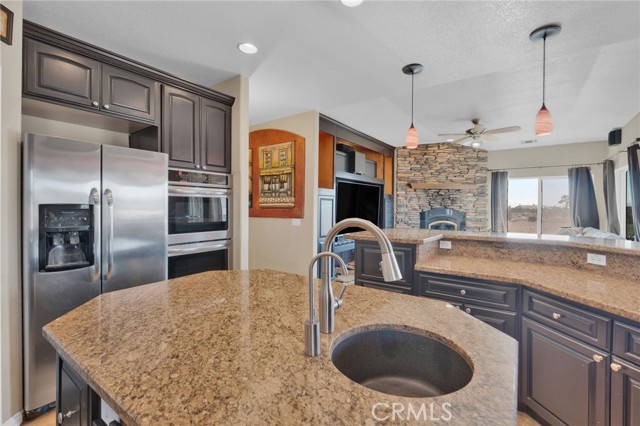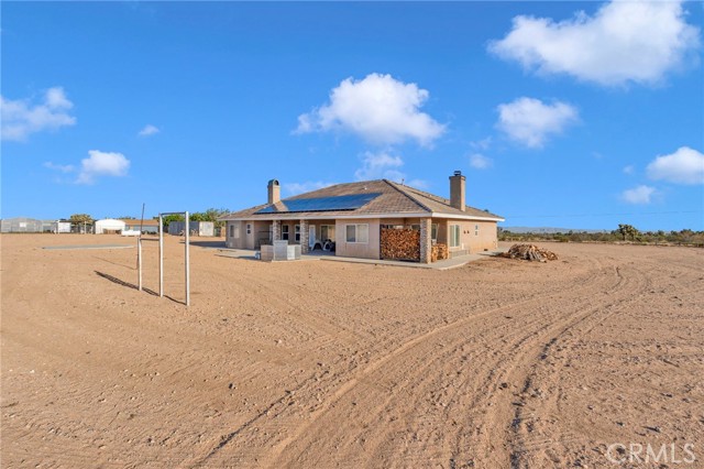 Welcome to this beautifully upgraded Phelan property offering comfort, efficiency, and thoughtful design throughout—set on an expansive 2.26-acre lot with plenty of room to enjoy desert living. This 4-bedroom, 2-bathroom home features a highly desirable layout with modern conveniences and quality finishes. The spacious kitchen is enhanced with island lighting, under-cabinet lighting, and elegant pot shelf illumination, creating a warm and functional space for cooking and entertaining. A recirculation pump ensures near-instant hot water, adding everyday convenience, while a propane stub-out on the patio is perfect for outdoor grilling. Enjoy indoor-outdoor living with a covered back patio and prewiring for speakers in the primary bedroom, family room, back patio, and garage—ideal for entertaining or relaxing. The home is also equipped with Cat5 enhanced wiring throughout for reliable connectivity. Car enthusiasts, hobbyists, or those in need of extra storage will appreciate the nearly 1,200 sq ft garage, complete with insulated doors and full insulation in the walls and ceiling for year-round comfort. Additional exterior features include light receptacles under the eaves for easy holiday or accent lighting installation. Energy efficiency is a major bonus with fully paid-off solar, helping reduce utility costs. Adding even more value, the Conex storage containers on the property are owned and included in the sale. With over two acres of land, this property offers space, privacy, and endless potential—perfect for those seeking both functionality and room to grow.