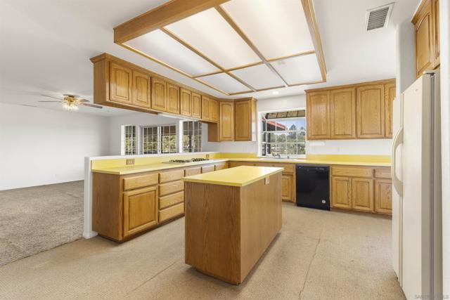 Perched in the hills of Fallbrook in the Winterwarm community. This single-level ranch-style home has been recently painted inside and out, offering beautiful views and plenty of space to grow. It has two fireplaces in the living and family rooms, a separate formal dining room, and an open kitchen with a laundry room. Home features a covered deck that stretches the length of the house, offering great views of the rolling hills. Property has a working well and multiple fruit trees. There is room for RV/Boat parking as well as a basement and workspace that spans the entire property.