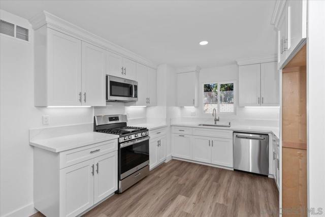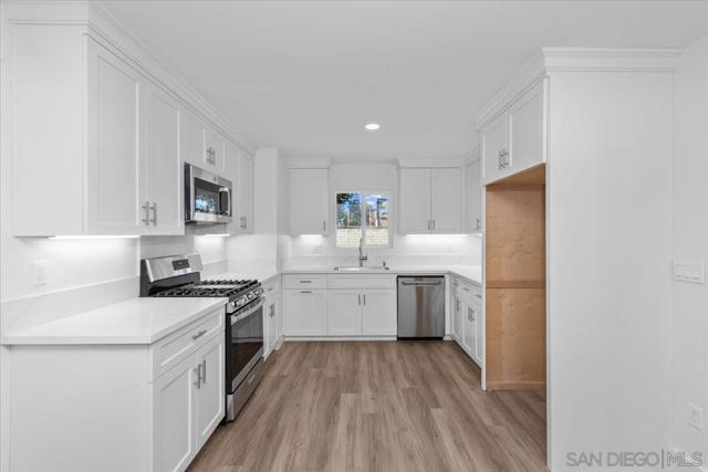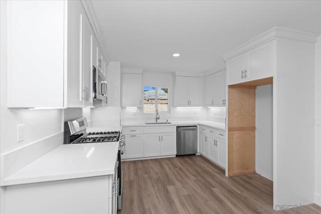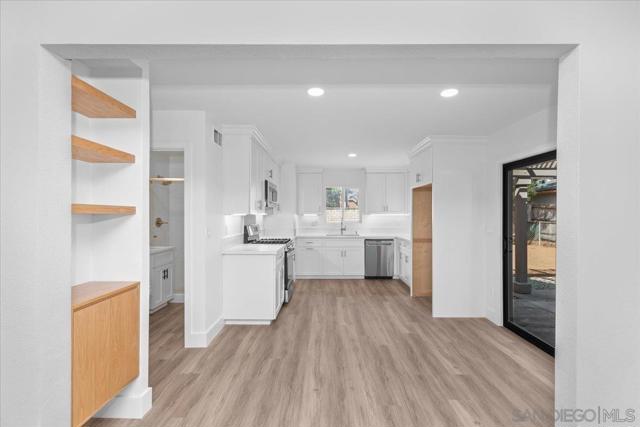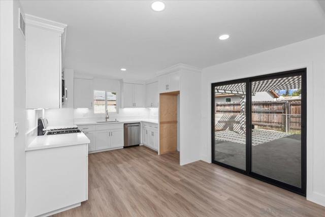 Remodeled top to bottom! Kitchen updated with new appliances, new sink and faucet, and new cabinets. Bathrooms completely remodeled. New dual pane windows. ALL of the following are brand new; roof, patio cover, furnace, water heater, garage door, front door, flooring, baseboards, light fixtures, mirrored wardrobes, etc.... Loads of space in the backyard too! This property is a must see!