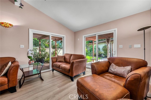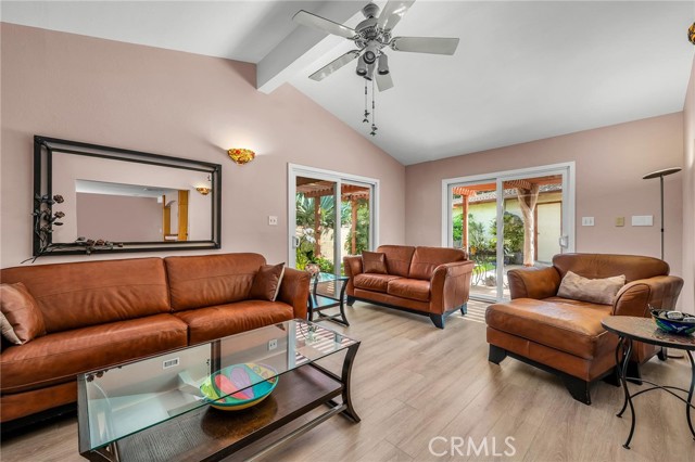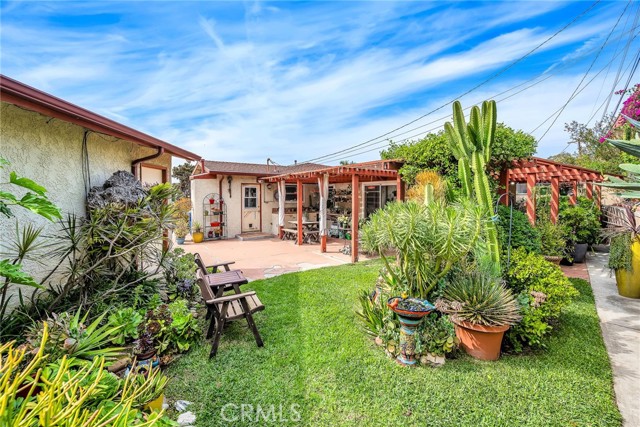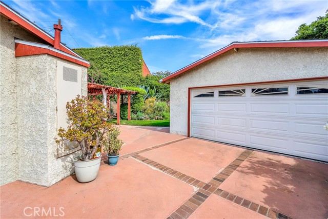 Tucked at the end of a quiet cul-de-sac, this home offers exceptional privacy and a peaceful neighborhood setting. Inside, the bright and airy open-concept layout showcases lovely views of the surrounding gardens from multiple rooms. The custom kitchen features pull-out drawers inside the cabinets and a generous pantry—thoughtful touches that make everyday living easier. The family room feels expansive with its high ceilings and two sliding doors that open directly to the outdoor space, creating a seamless indoor-outdoor connection. You’ll find three spacious bedrooms, each with generous closet space and abundant natural light. Parking and storage are a dream here: the long driveway accommodates up to four cars, and the oversized garage includes a great workbench and room for two more vehicles. Attached to the back of the garage is a huge bonus room—perfect as an art studio, gym, office, or whatever suits your lifestyle. All of this is within walking distance to President Avenue Elementary and Narbonne High School, adding even more convenience to an already ideal location.