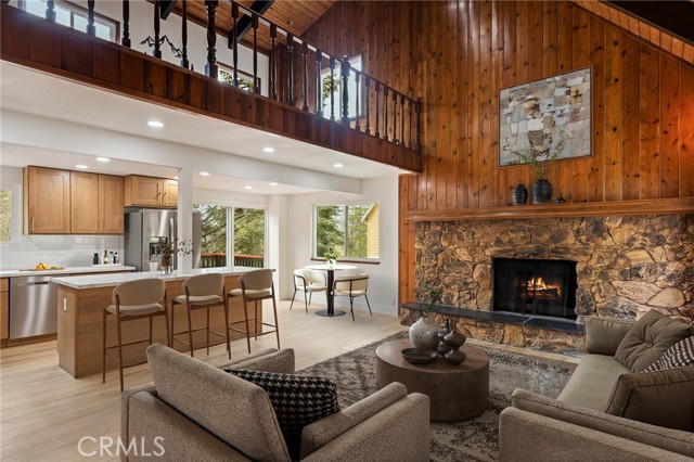 Experience a level of refinement rarely found in Lake Arrowhead, where timeless design, intentional craftsmanship, and true pride of ownership converge at 26623 Hillcrest Lane. Located within the coveted Arrowhead Woods enclave and offering full lake rights, this is not simply a renovated home... it's a thoughtfully curated mountain retreat designed to stand the test of time.From the moment you step inside, the difference is unmistakable. This is not a trend driven design, it's enduring, organic, and effortlessly sophisticated. A comprehensive, high-end renovation was completed with the intention of creating a forever home, utilizing premium materials such as rich birch flooring, natural stone surfaces, and a cohesive palette that evokes a calm, elevated mountain lifestyle.At the heart of the home lies a truly exceptional kitchen. Expansive, open, and designed for both everyday living and large scale entertaining. Outfitted with top tier GE Cafe appliances, designer fixtures, and abundant workspace, it seamlessly connects to the main living areas, creating a natural flow for gathering and hosting.The main level showcases a grand great room with soaring cathedral ceilings, a striking stone fireplace, and an inviting warmth that defines mountain luxury. A second, generously sized family room below offers additional living space with its own fireplace, ideal for guests, multi-generational living, or relaxed evenings in.Four spacious bedrooms and three beautifully appointed bathrooms provide comfort and flexibility, while multiple decks including a wraparound Trex-style deck and a secondary entertaining deck invite you to take in the surrounding woodland views from nearly every angle. Large windows throughout frame the natural setting, giving the home a true ''living in the treetops'' experience. Set on a quiet cul-de-sac within a level, walkable neighborhood bordering the golf course, the location offers both privacy and accessibility with no through traffic, an increasingly rare combination in the area. Dual garages at street level add convenience, while the property still offers potential for expansion or the addition of an ADU.Additional features include dual-pane windows, updated systems, and a Flo smart water monitoring system for peace of mind. Homes of this caliber, where design, quality, and setting align so effortlessly are few and far between. And while the photos are compelling, this is one that truly reveals its full impact in person.