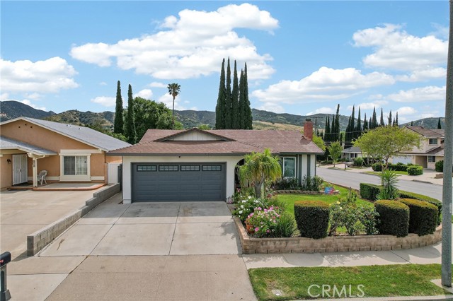 This single-story home in West Simi Valley is set along a cul-de-sac street and offers a front yard view of Mt. McCoy, surrounded by established homes on larger lots. Offering 3 bedrooms, 2 bathrooms, and approximately 1,268 sq. ft. of living space on an 11,325 sq. ft. lot, the property provides a comfortable and functional layout. Curb appeal begins with a large shade tree, mature landscaping, and an extra-wide driveway leading to the 2-car garage with roll-up door and windows. Wood accents and an etched glass front door add character to the exterior. Inside, wood-like laminate flooring runs through most of the home, complemented by detailed wood millwork including wainscoting, crown molding, baseboards, and wood window casings. Centered around a rock-front gas fireplace with a custom wood mantle, the living room also features a skylight and ceiling fan for added light and comfort. A pass-through connects the dining area to the living room, creating a functional layout. In the kitchen, Formica countertops, wood cabinetry, a breakfast bar, 4-burner gas cooktop, oven, dishwasher, and refrigerator provide everyday functionality. A garden window overlooks the front yard, and direct access to the garage adds convenience. Two secondary bedrooms include ceiling fans, mirrored closet doors, and a shared closet configuration between them, allowing flexibility for bedroom, office, or extended use. Nearby, the hall bathroom offers a single-sink vanity, crown molding, a tub/shower combination, and additional storage. Set toward the rear of the home, the primary bedroom features a sliding glass door to the backyard, mirrored closet, an additional closet, and an attached bathroom with a walk-in shower and glass doors, pedestal sink, and storage cabinetry. Additional functionality is found in the 2-car garage, which includes storage cabinets, washer and dryer, and a partially framed section that was previously used as a small bedroom or bonus space, along with direct access to the backyard. Outdoors, the backyard is spacious and full of character. A brick patio with a solid wood cover and ceiling fan creates a comfortable outdoor area, complemented by multiple sitting spaces, a wood gazebo, and a mature oak tree providing natural shade. A succulent garden, winding rock pathways, greenhouse, and a shed with a barn-style door, along with an additional storage shed and rain barrel, add both charm and utility. The size of the lot offers room to expand, garden, or reimagine the space. Improvements include a composition shingle roof installed at the end of 2015, newer central air conditioning unit, and dual-pane windows. A well-maintained home in a desirable West Simi Valley location, ready for its next chapter.