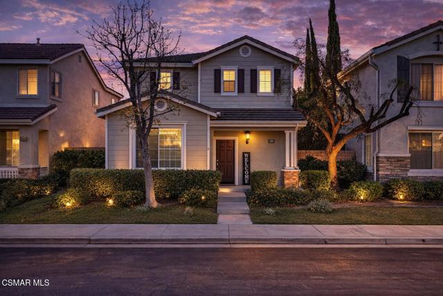 Charming POOL Home with OWNED SOLAR and BACKUP BATTERY on a END of Cul-De-Sac location! Tucked into a peaceful residential pocket just a short stroll from Foothill Park, this tastefully updated 5-bedroom residence offers a spacious backyard retreat and a regal curb appeal enhanced by sprawling grass lawns, a gracefully curved concrete walkway, and a tile-surfaced front porch--welcoming you to the elegant beveled-glass front door. Inside, the entire interior has been FRESHLY repainted and the ceilings have been NEWLY scraped to enhance brightness and create a crisp, move-in ready atmosphere. The main Living Room is spacious and inviting, showcasing handsome REAL wood flooring, plantation-shuttered windows, a gas fireplace, and BRAND-NEW recessed lighting. Adjacent, the Formal Dining Room continues the real wood flooring and enjoys its own plantation-shuttered windows + updated light fixture, making it a fantastic space for both casual and formal gatherings.The Kitchen is generously sized and bathed in natural light, appointed with recessed lighting, tile countertops, and designer stainless-steel appliances including a WOLF gas range beneath a stainless-steel range hood, BOSCH dishwasher, and a 2-door KITCHENAID refrigerator. Additional highlights include a garden window, roomy pantry with pull-out shelving, and sliding glass doors that open to the backyard--perfect for entertaining and everyday living. The Kitchen Eating Area provides a comfortable space to enjoy daily meals while taking in the view. Downstairs, the Primary Bedroom offers real wood flooring, recessed lighting, two closets with bifold doors, plantation-shuttered windows, and an en-suite bathroom upgraded with a stone-topped vanity and tile-walled shower featuring dual shower-heads. A deep under-stair storage closet provides excellent functionality and hidden storage options.Upstairs, four additional bedrooms offer thoughtful layouts and plenty of flexibility. Bedroom #1 includes a ceiling fan, plantation-shuttered windows, a built-in window bench with storage, and a sliding wardrobe closet. Bedroom #2 offers traditional proportions and sliding wardrobe closet doors. Bedroom #3 has been fitted with a built-in desk, ideal for use as a home office or study space. Bedroom #4 enjoys a ceiling fan and sliding wardrobe closet, completing a comfortable second-floor layout. Two separate upstairs hallway closets provide additional linen and storage space, and the upgraded Hall Bathroom includes a modern built-in vanity and a NEWLY glazed tub/shower! Each room throughout this home feels BRIGHT!The Backyard is a PRIVATE outdoor retreat, designed for relaxation and entertaining with a sparkling in-ground pool + spa fitted with an AUTOMATIC safety cover. BRAND-NEW artificial grass lawns add beauty with minimal maintenance, and a spacious covered concrete patio with a freshly painted patio cover provides a shaded zone for dining, lounging, or outdoor gatherings. Additional upgrades include a FULLY OWNED SOLAR system with BACKUP BATTERY to deliver energy efficiency & peace of mind, as well as a NEWER Rheem water heater. The home is ALSO plumbed for soft water throughout. A 2-car garage provides ample storage and everyday convenience. This special home is ideally located near scenic parks, highly regarded local schools, shopping, dining, and commuter routes--offering that rare combination of comfort, privacy, and efficiency in one of Camarillo's most desirable neighborhoods!